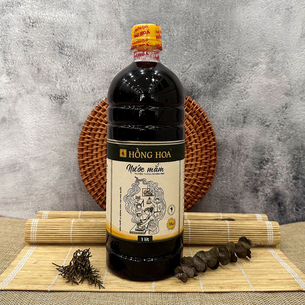 Nước Mắm Nhĩ Cá Cơm Truyền Thống Phú Quốc Hồng Hoa - 18 độ đạm - Chai nhựa 1 lít