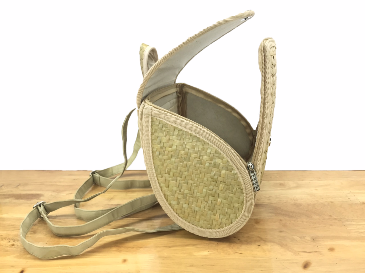 Balo Bàng Cỡ Nhỏ là một trong các sản phẩm nằm trong dòng balo làm từ cây cỏ bàng 100% ngoài tự nhiên. Được làm thủ công bởi các nghệ nhân địa phương, sản phẩm được đan thủ công từ cỏ bàng tạo ra sự chắc chắn. Balo còn được kết hợp dây kéo và nút hít để đóng mở balo.