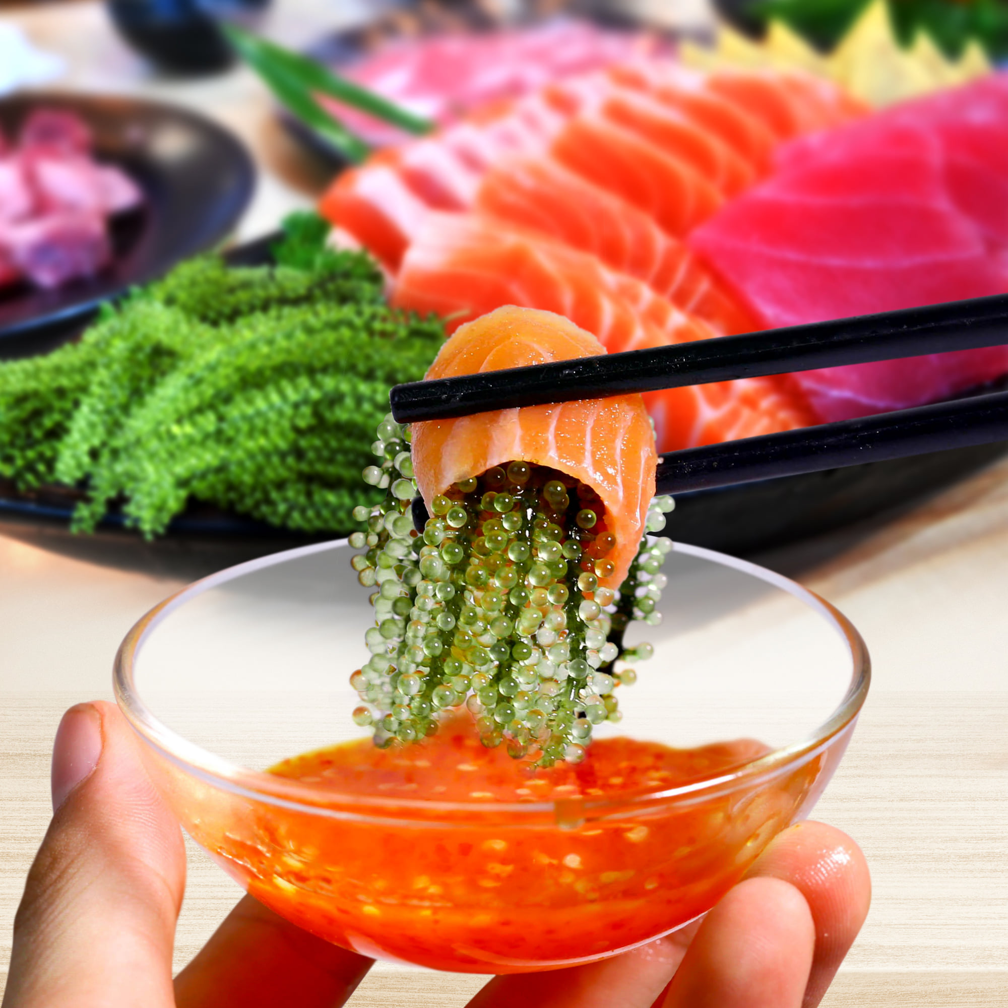 - Chất Lượng Nhật Bản: Rong nho được nuôi trồng ở vùng biển Xanh- Sạch – Đẹp tỉnh Khánh Hòa theo tiêu chuẩn và công nghệ của Nhật Bản.
