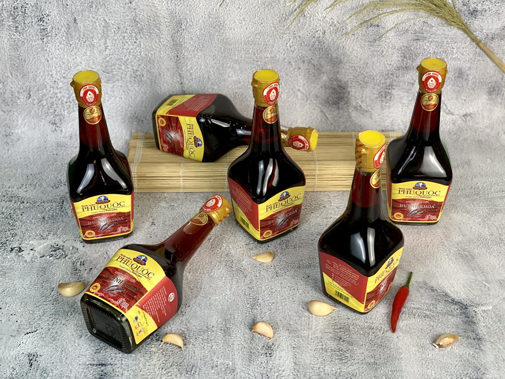 Nước Mắm Cốt Nhĩ Truyền Thống CDĐL Phú Quốc Huỳnh Khoa 43 độ đạm (Nguyên Chất) - Chai 200 ml - Hộp 6 Chai