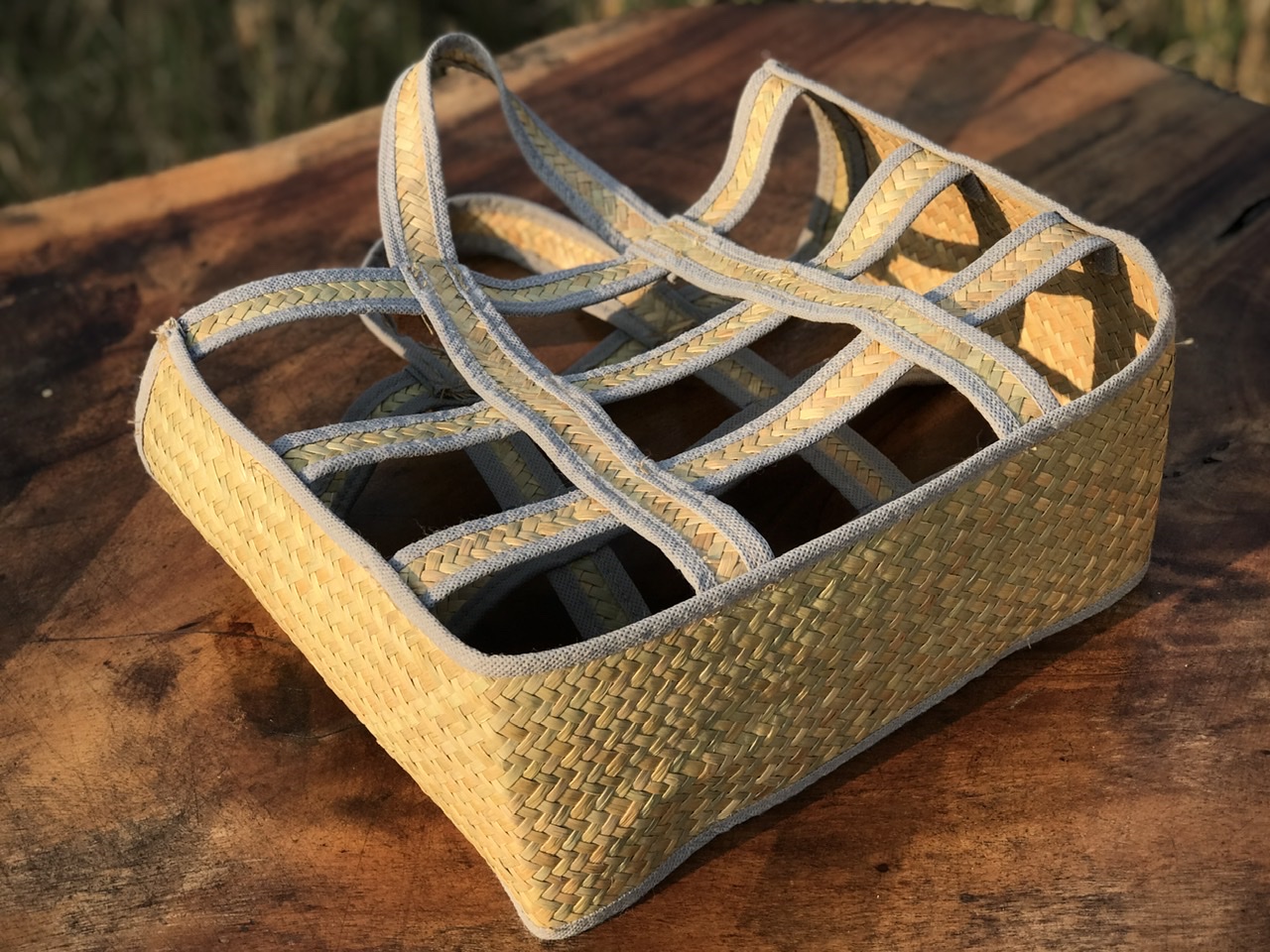 Giỏ được làm từ cây bàng cói và lục bình tự nhiên Được đan thủ công từ những nghệ nhân trong vùng