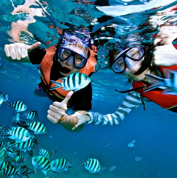 - Tham quan trên bộ, bơi lặn bằng bình hơi, câu cá và thẻ mực