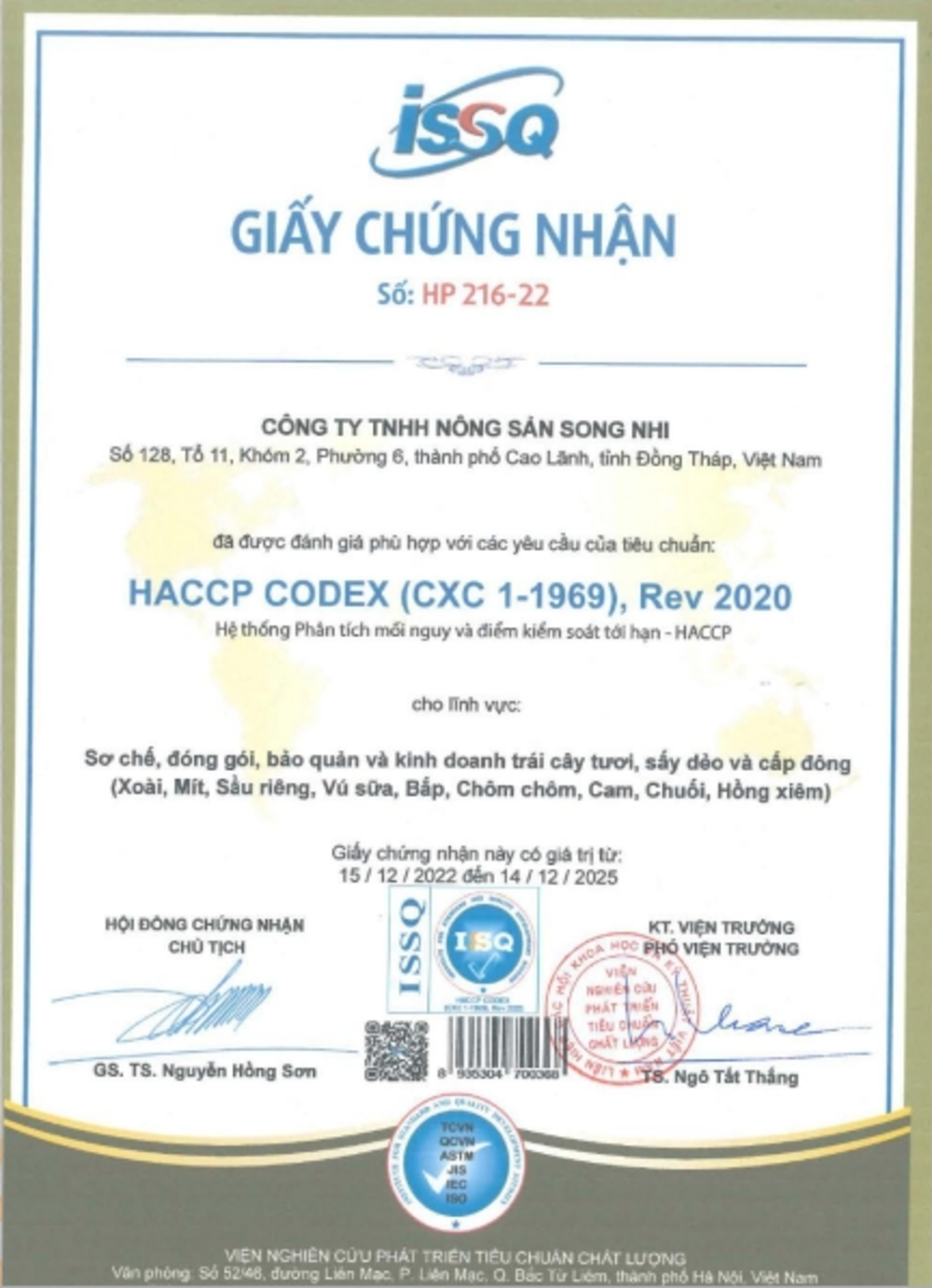 Với hơn 30 năm gắn bó cùng trái xoài Cao Lãnh trứ danh và vùng đất chuyên canh màu mỡ của Đồng Tháp, Song Nhi tự hào đồng hành cùng bà con nông dân xây dựng vùng nguyên liệu đạt chuẩn, tạo nên chuỗi sản xuất – cung ứng bền vững phục vụ cho cả thị trường trong nước và quốc tế. Từ nền tảng đó, xoài sấy dẻo SUNHI ra đời như một kết tinh ngọt lành của nông sản Việt: được chọn lọc từ những trái xoài tươi ngon nhất, chế biến bằng công nghệ sấy hiện đại, giữ nguyên vị ngọt thanh, dẻo mềm tự nhiên mà không cần dùng chất bảo quản hay phụ gia độc hại.