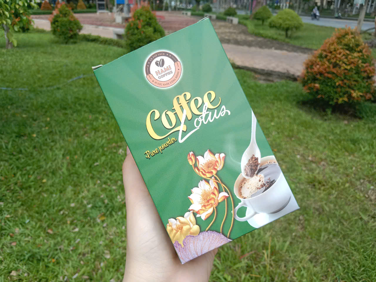 - Thành phần : Hạt cafe, Hoa sen tươi