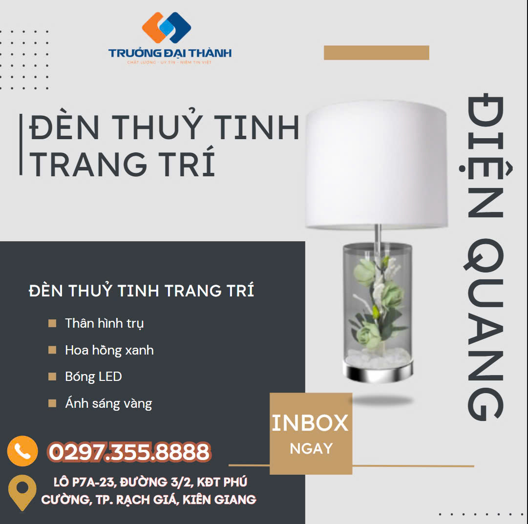 Đèn thủy tinh trang trí Điện Quang ĐQ DCL05G WW ( thân hình trụ, hoa hồng xanh, bóng LED, Ánh sáng vàng ) 0