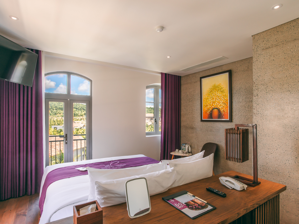 “Heye” – hoa sen trong tiếng Trung Quốc, tượng trưng cho niềm vui trên khuôn mặt và tình yêu trong trái tim của mỗi người . Căn phòng với không gian rộng rãi hoàn hảo cho các gia đình có trẻ nhỏ, đồng thời mang đến sự yên bình và riêng tư khi cần thiết. Phòng được trang bị với giường cỡ lớn King size và giường đơn cho trẻ nhỏ, với chất liệu mềm mại đem lại cảm giác dễ chịu cho bạn và những người thân yêu.