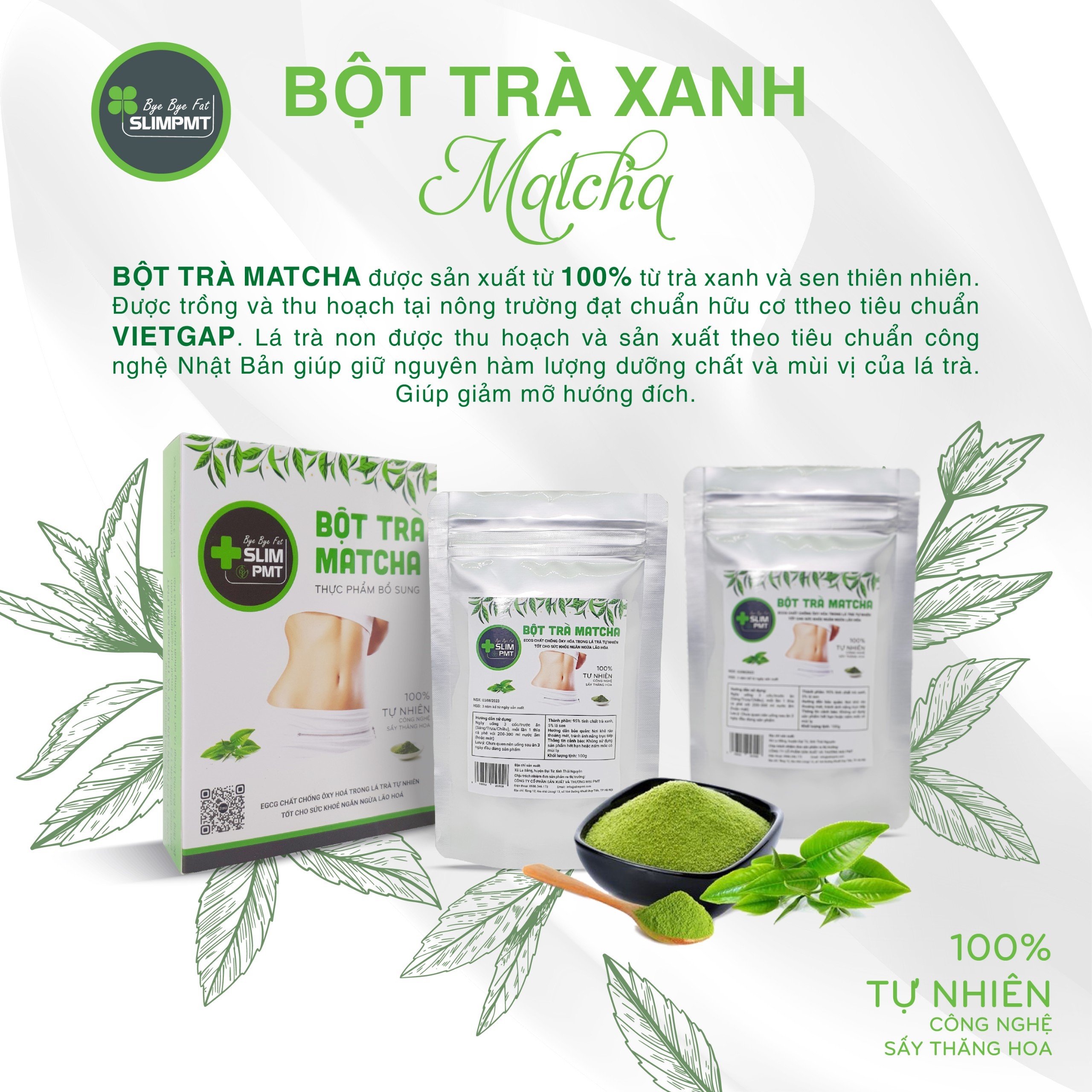 Bột trà xanh Matcha được sản xuất 100% từ trà xanh và sen thiên nhiên.