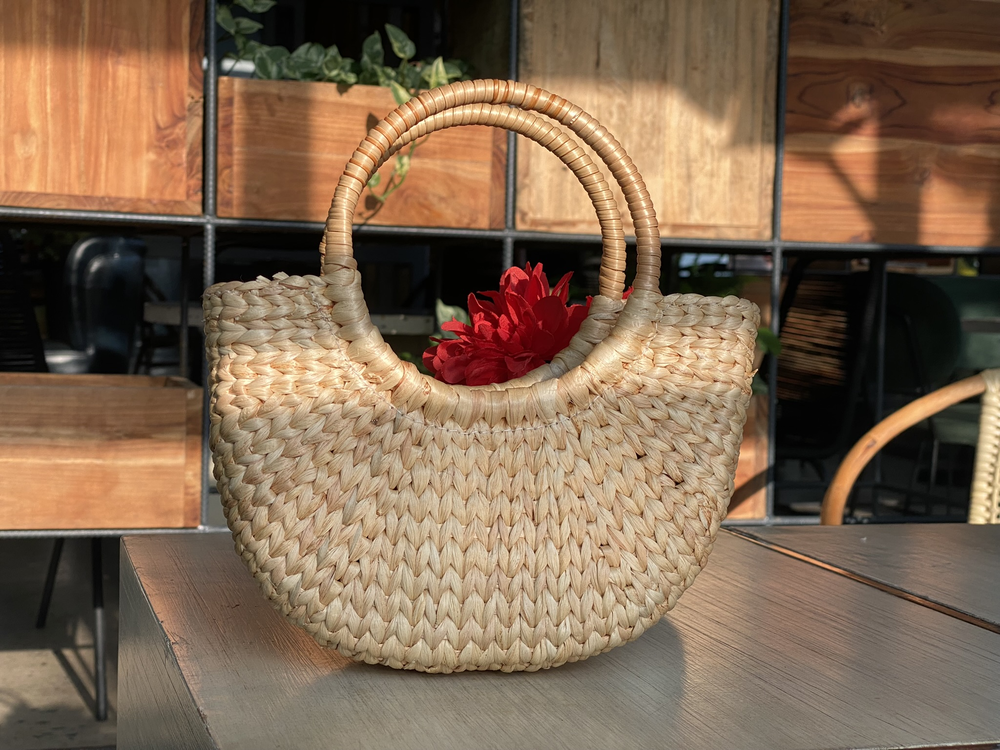 Giỏ mề gà bán nguyệt là sản phẩm độc đáo được đan thủ công bằng tay của những người nghệ nhân lành nghề. Giỏ làm từ 100% nguyên liệu tự nhiên là lục bình phơi khô. Có nhiều kích thước tùy vào nhu cầu sử dụng của mọi người, bên trong giỏ có lót vải và khoá kéo an toàn để đồ cá nhân và vật dụng, quai cầm chắc chắn thuận tiện. Từng đường nét gọn gàng, cẩn thận ta thấy được sự tỉ mỉ của người nghệ nhân dành cho những chiếc lục bình khô thô sơ thành chiếc túi xinh xắn, làm phụ kiện chụp ảnh, hay có thể mang làm quà lưu niệm cho chuyến du lịch của du khách trong nước và nước ngoài.