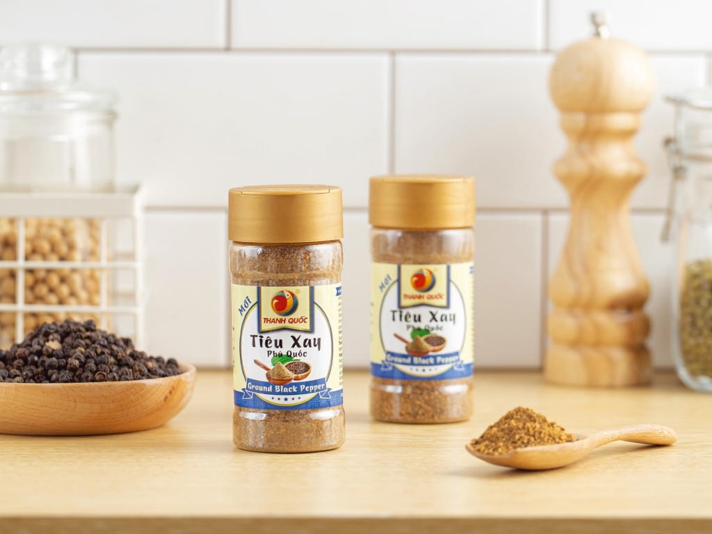 Tiêu Xay Phú Quốc Thanh Quốc 70g 100 hạt tiêu nguyên chất không chất bảo quản Sản phẩm đạt chứng nhận OCOP 4 sao mang hương vị cay nồng đặc trưng là gia vị không thể thiếu trong bữa ăn Việt