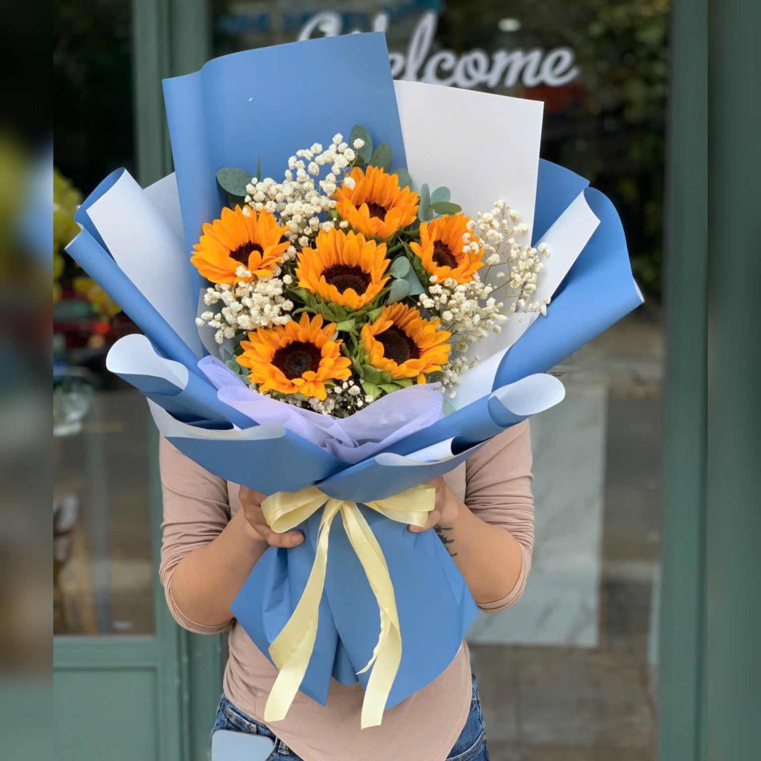 giỏ hoa hướng dương nắng ấm