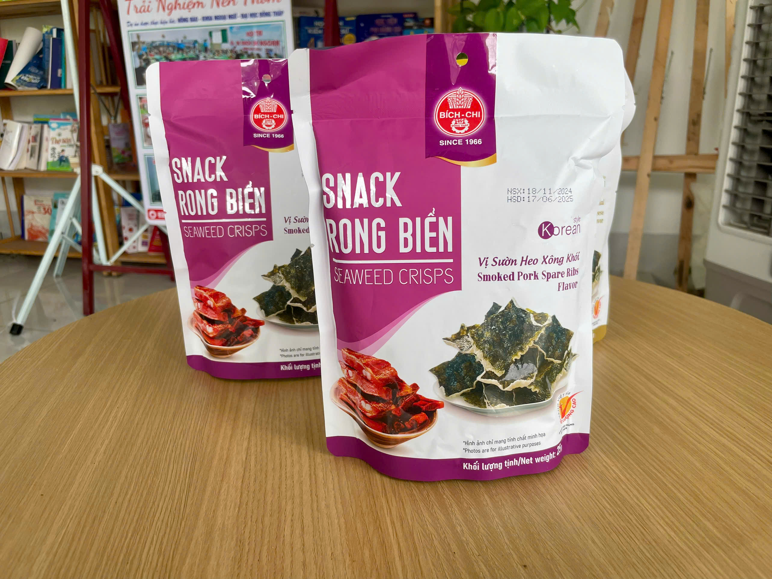 Snack rong biển vị sườn heo xông khói Bích Chi là một món ăn vặt tiện dụng và hấp dẫn, phù hợp với mọi người.
