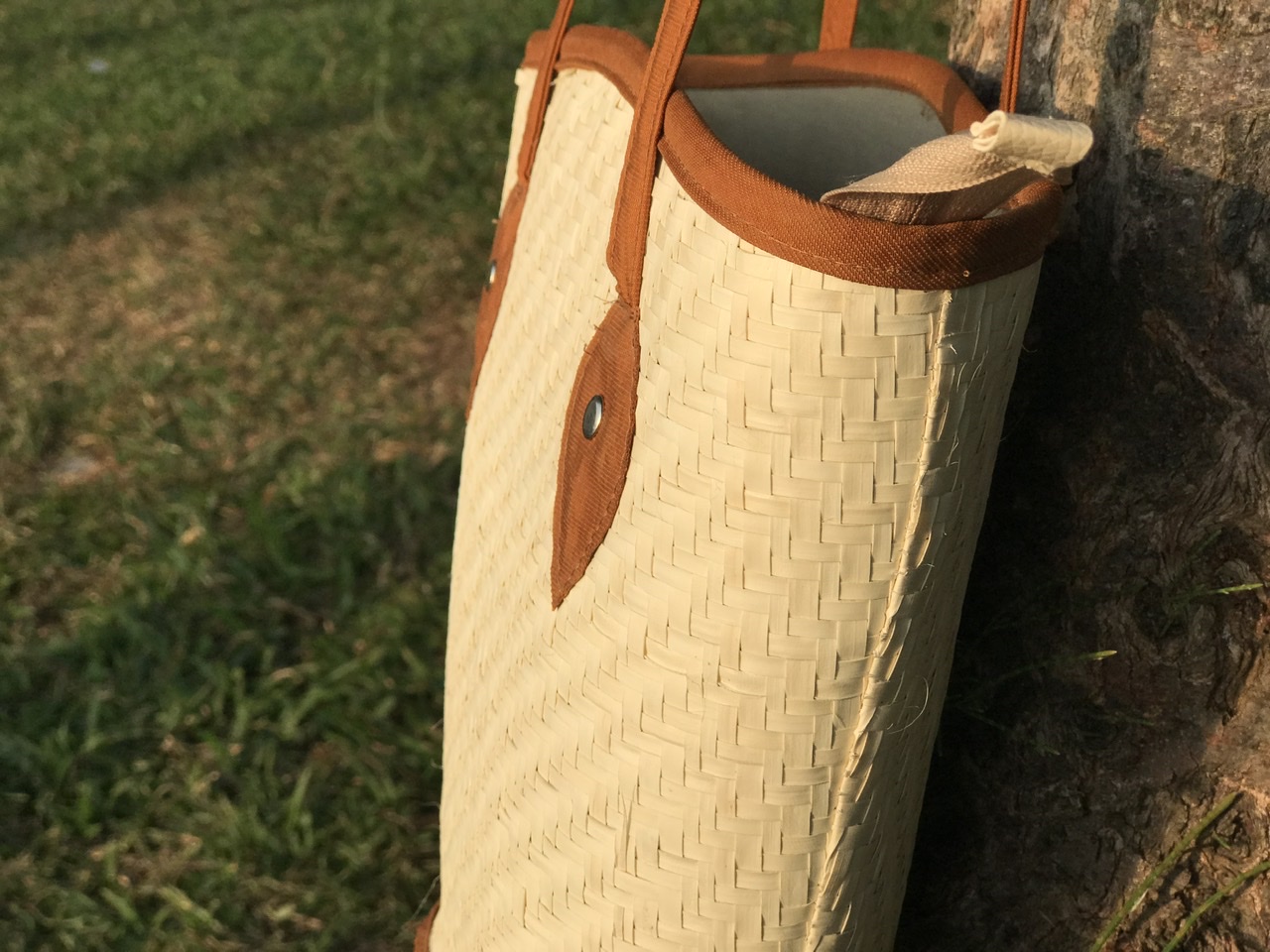 Balo Bàng được làm từ cây bàng cói và lục bình tự nhiên Được đan thủ công từ những nghệ nhân trong vùng