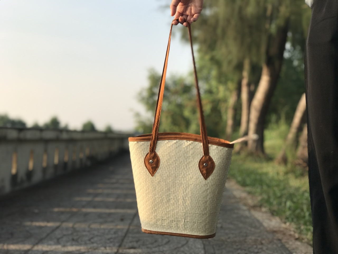 Ví cầm tay được làm từ cỏ bàng tự nhiên 100 được đan thủ công bởi người dân địa phương hình dáng vô cùng hiện đại rất hợp với các chuyến đi du lịch đi chợ hoa
