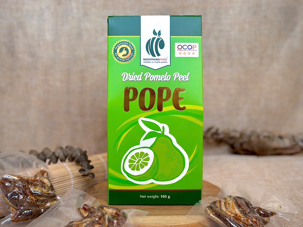 - Tên sản phẩm: Vỏ Bưởi Sấy Dẻo POPE