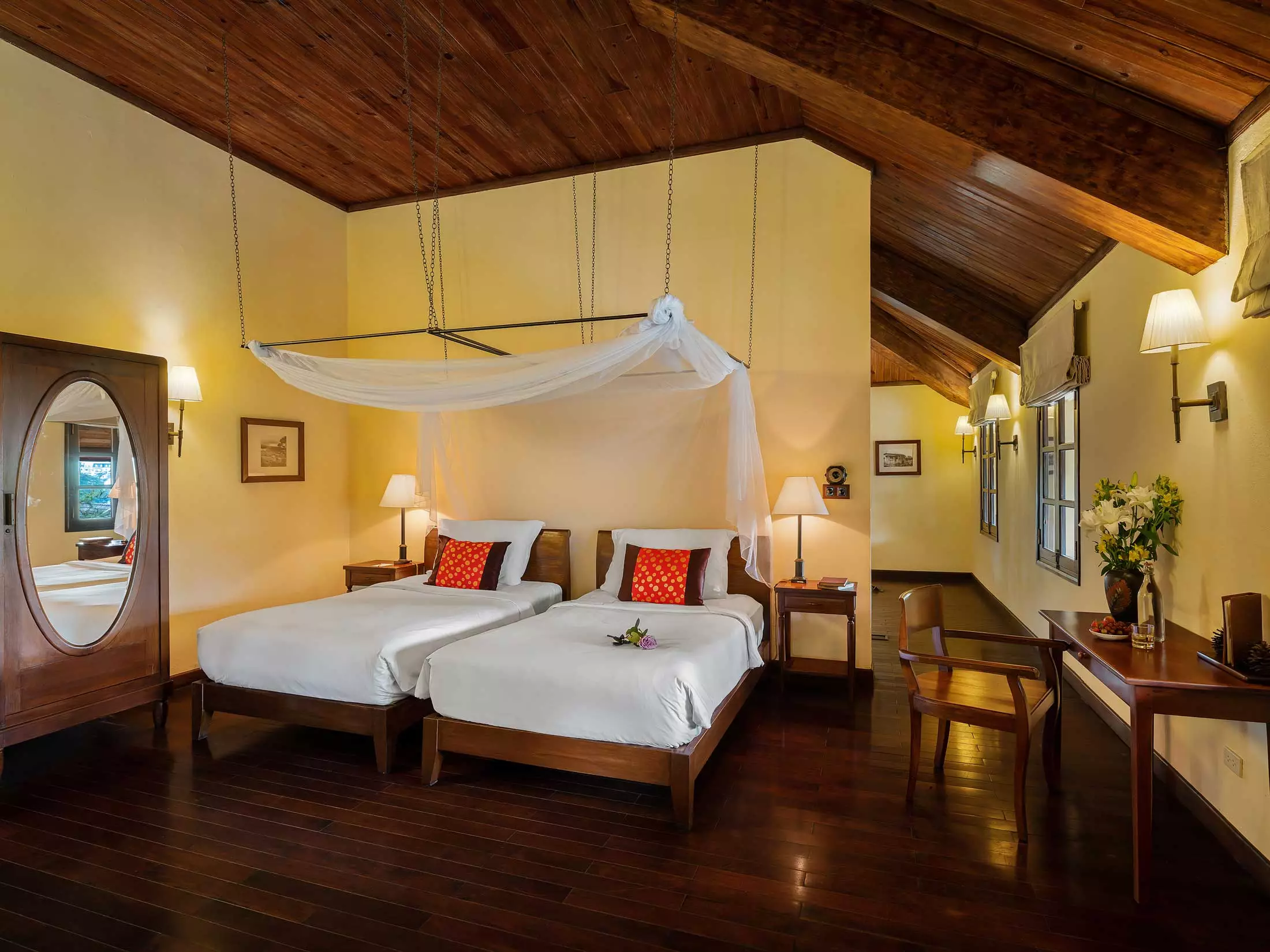Lấy cảm hứng từ thời đại tinh tế xa xưa, 22 căn phòng được thiết kế trang nhã với lựa chọn giường đôi queen size, tối đa 02 người lớn và 01 trẻ em dưới 6 tuổi. Cùng chiêm ngưỡng những chạm khắc tinh tế của đồ nội thất bằng gỗ và các vật phẩm sưu tầm tạo nên nét duyên dáng xưa cũ.