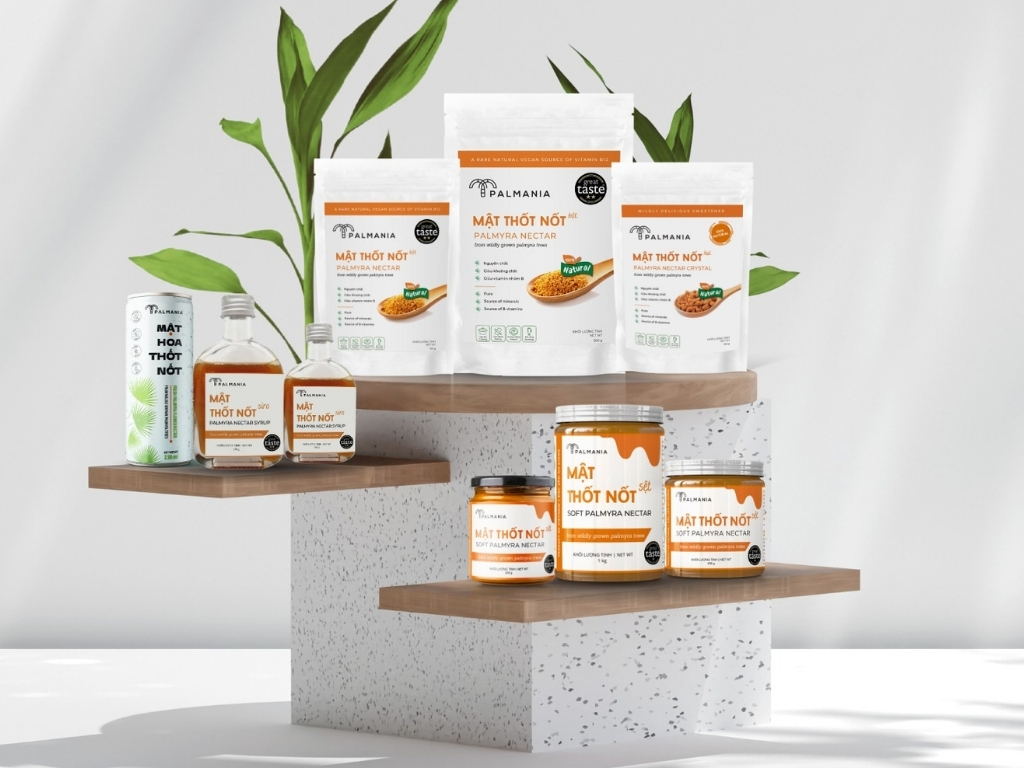 Crafted from the nectar of the Palmyra palm (Borassus flabellifer) trees that grow naturally in the fertile soil of An Giang, Palmania PALMANIA Soft Palmyra Nectar is rich in essential amino acids, minerals, and B vitamins, with a low glycemic index (Low GI) — supporting heart health, balanced energy, and weight management.