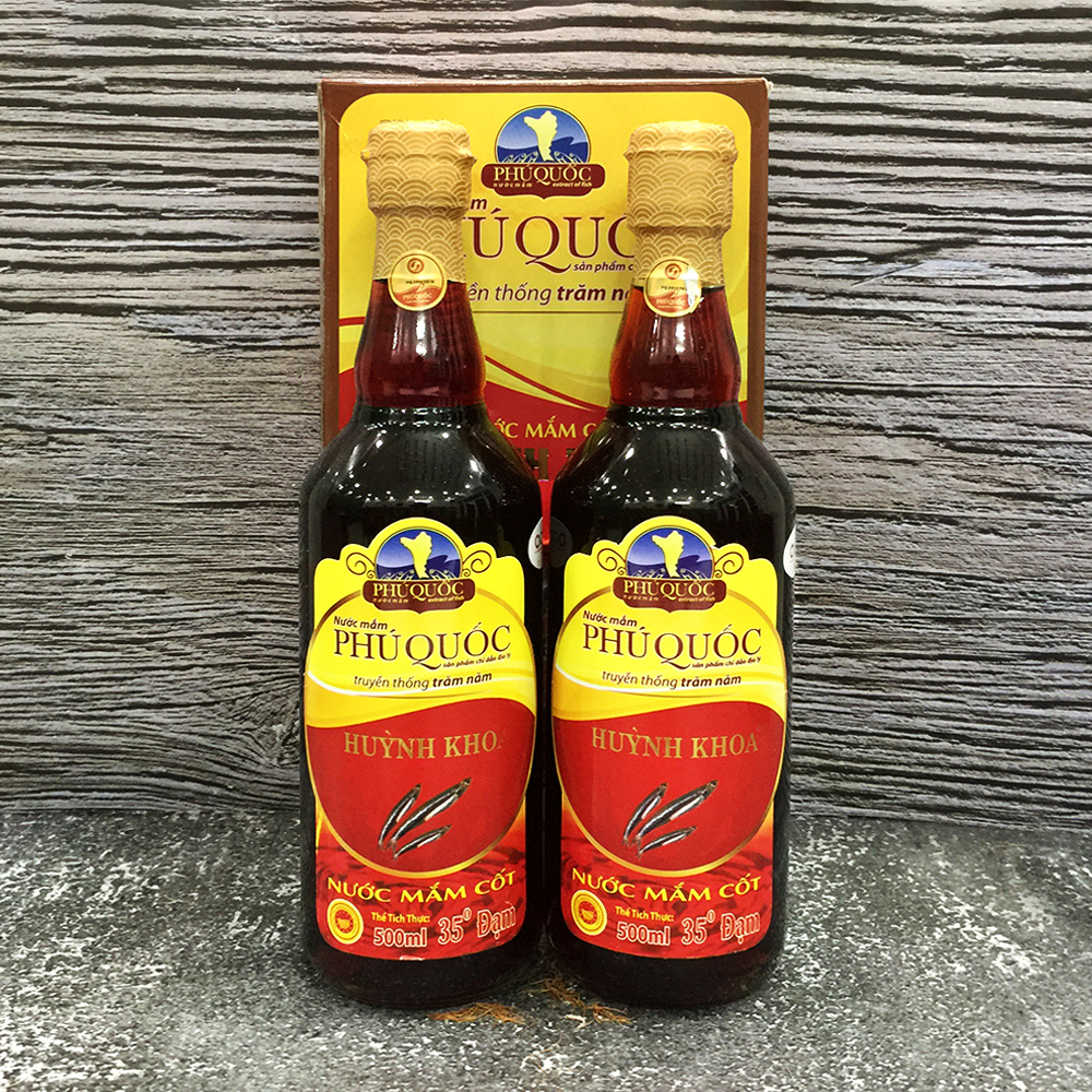 Nước Mắm Cốt Nhĩ Truyền Thống CDĐL Phú Quốc Huỳnh Khoa 35 Độ Đạm (Nguyên Chất) - 500 ml | Hộp 2 chai