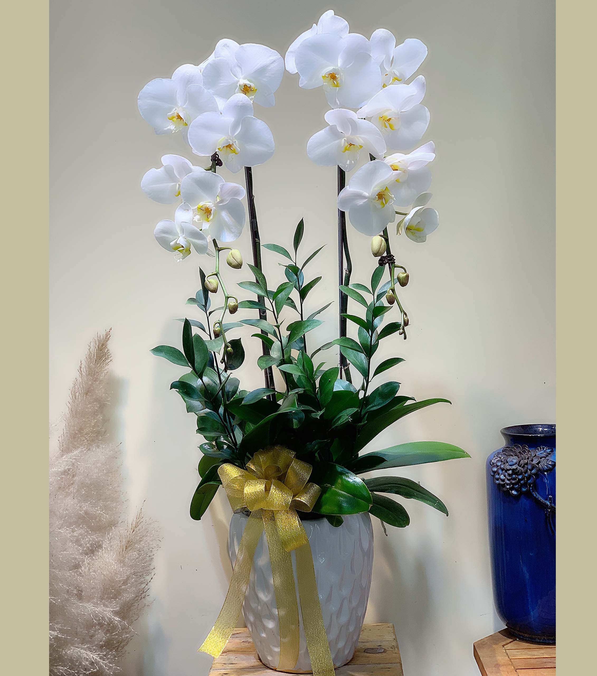 Chậu lan hồ điệp trắng 2 cành sang trọng, tinh tế đơn giản mà sắc sảo