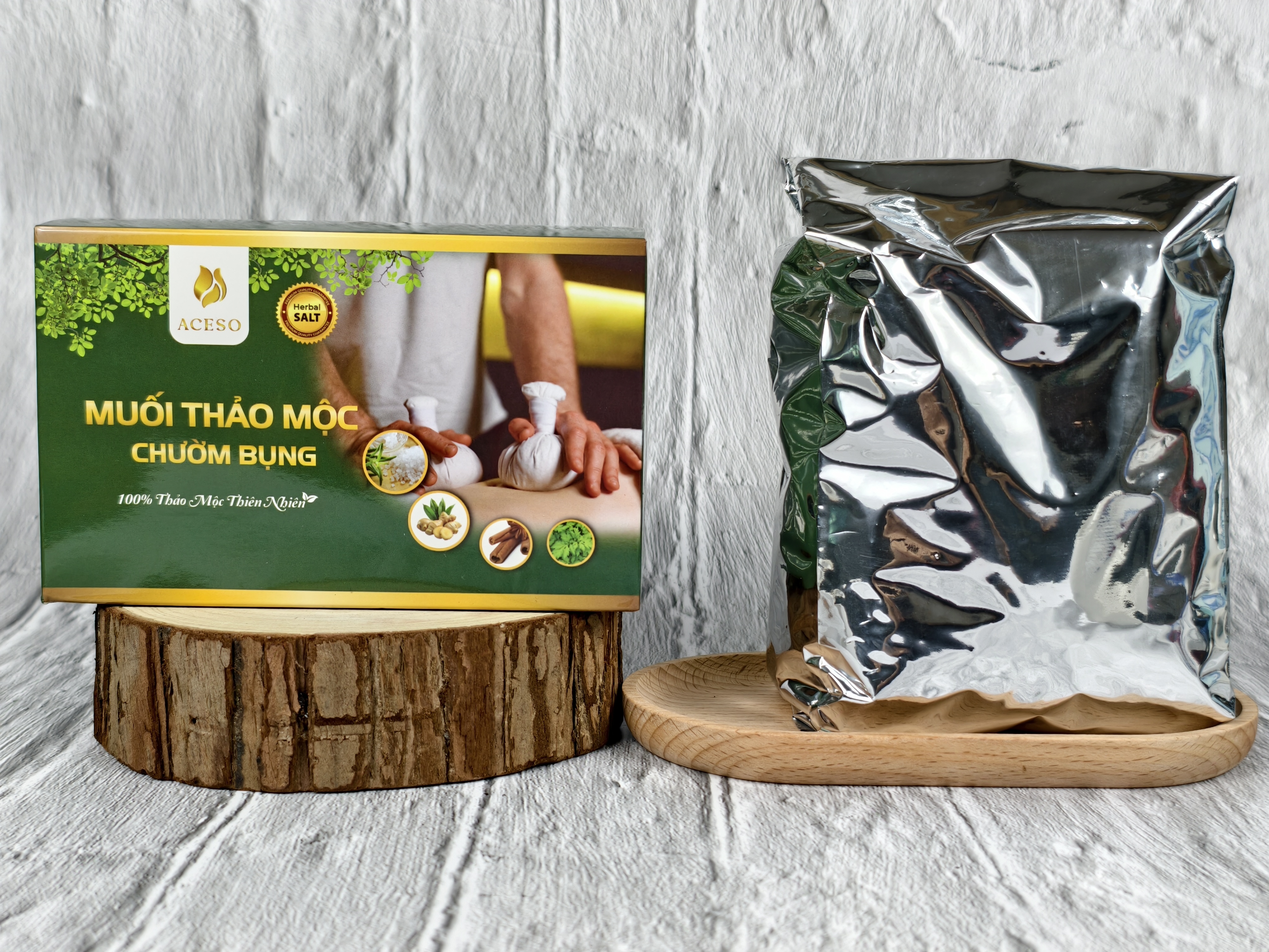 - Tên sản phẩm: Muối thảo mộc chườm bụng Aceso