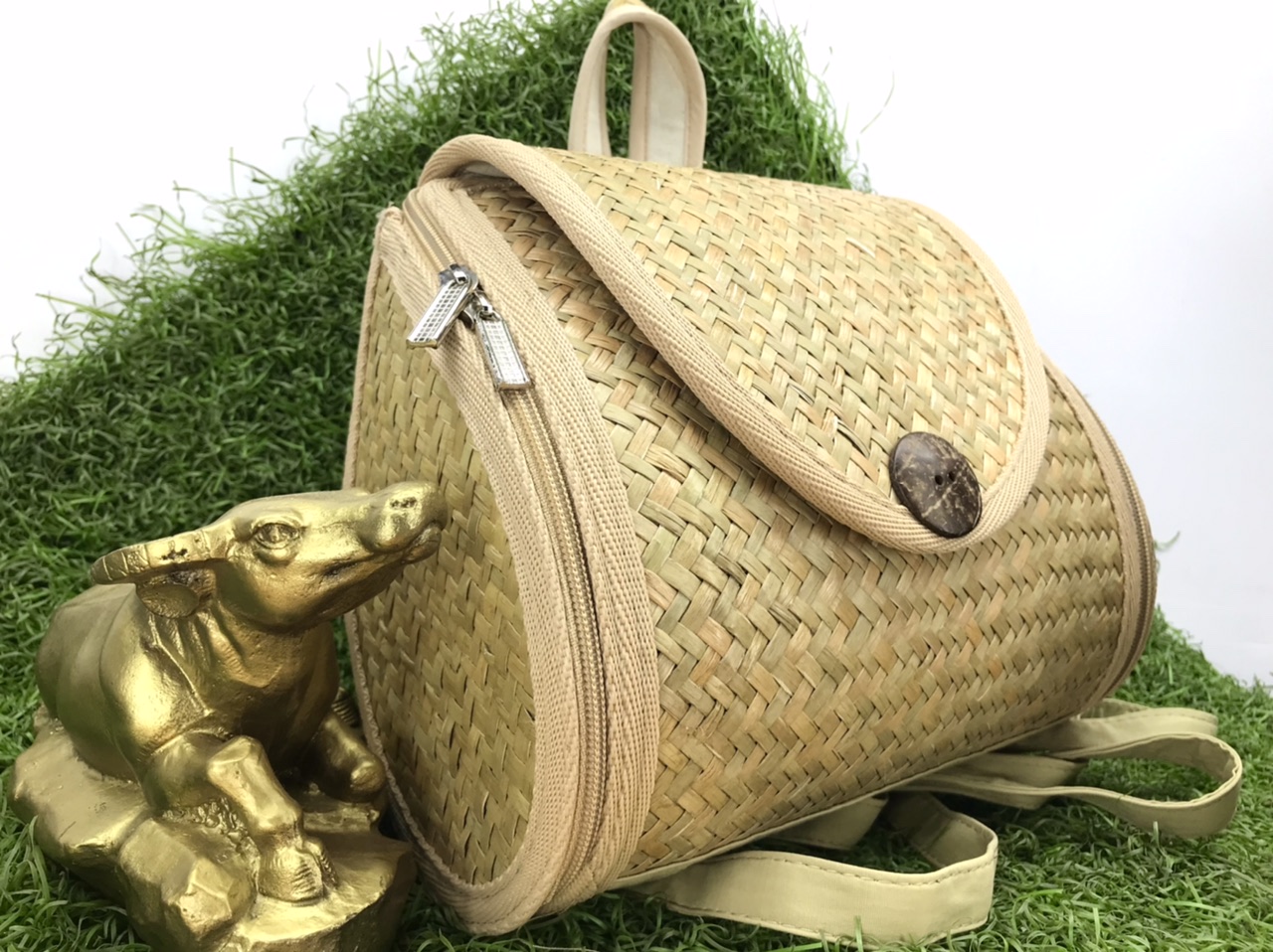 Balo Bàng được làm từ cây bàng cói và lục bình tự nhiên Được đan thủ công từ những nghệ nhân trong vùng