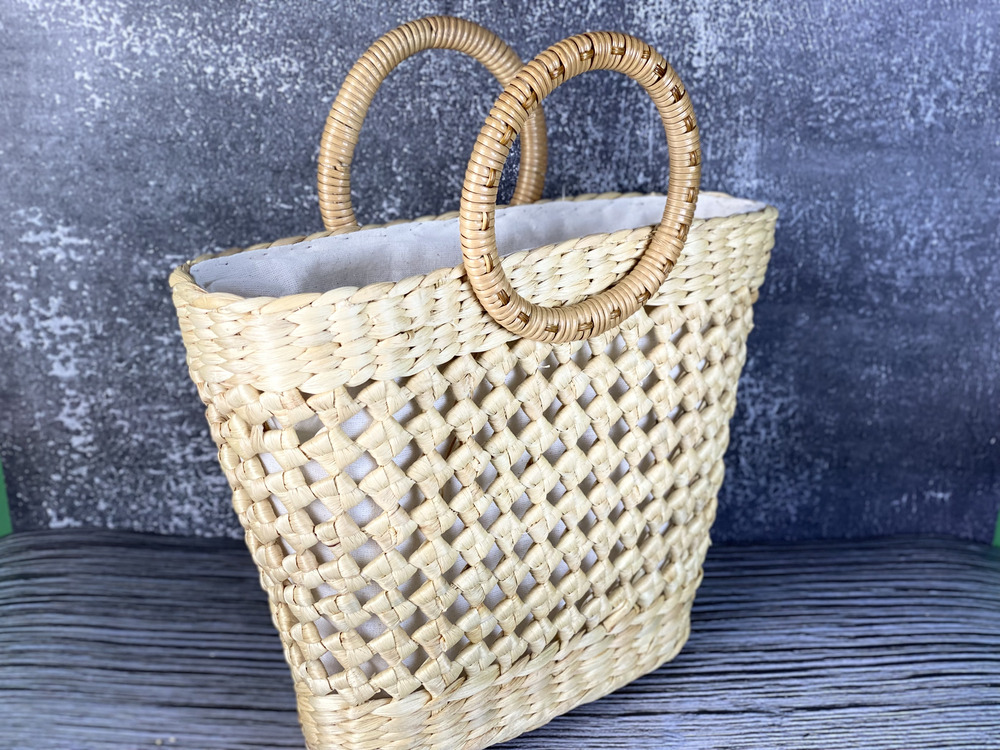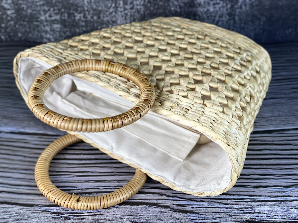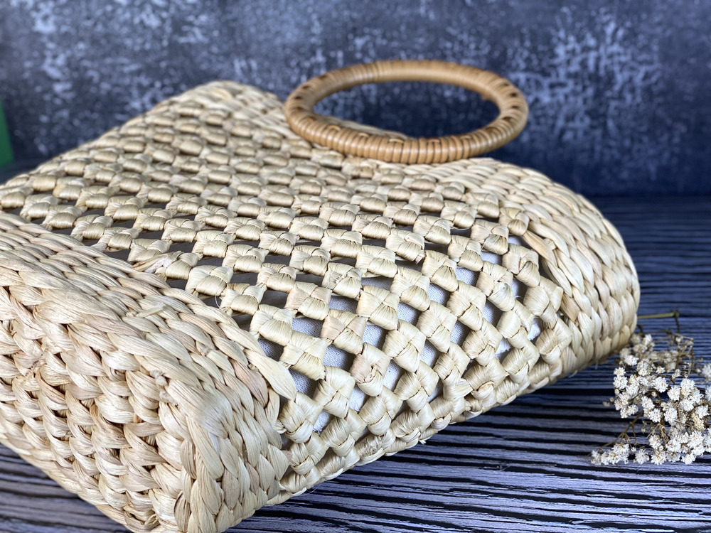 - Thành phần: Lục bình tự nhiên, quai, lót vải, khóa kéo
