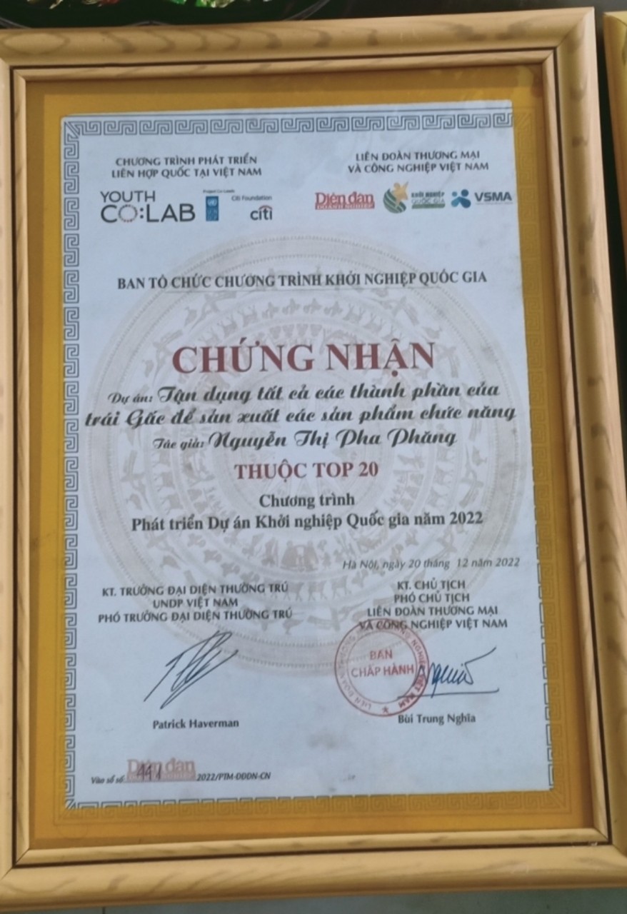 Từ đó đến nay các Sản phẩm từ trái gấc P’Phăng đã nhận được nhiều giải thưởng trong các cuộc thi Khởi nghiệp: