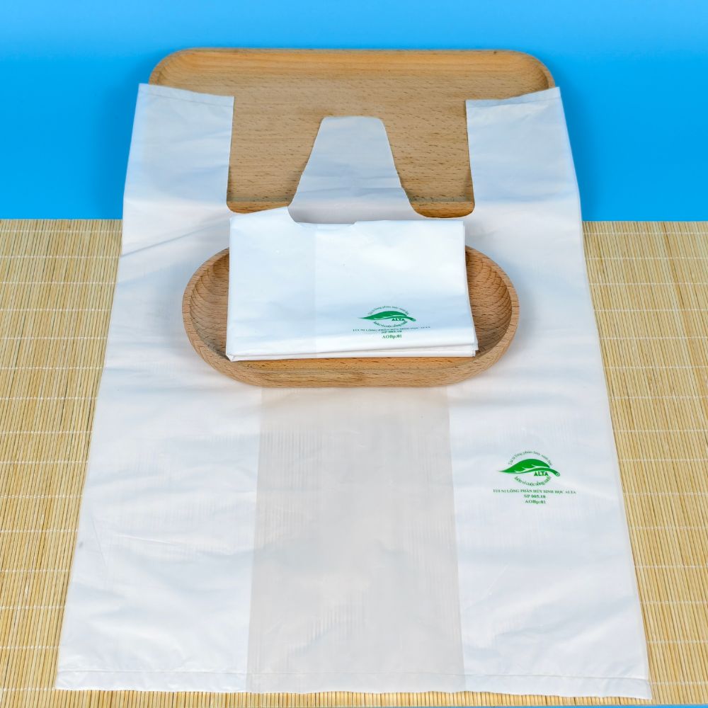 - Khi thải bỏ, túi có thể tự phân rã thành CO₂, nước và sinh khối vô hại trong 6–12 tháng, không gây tồn dư vi nhựa.