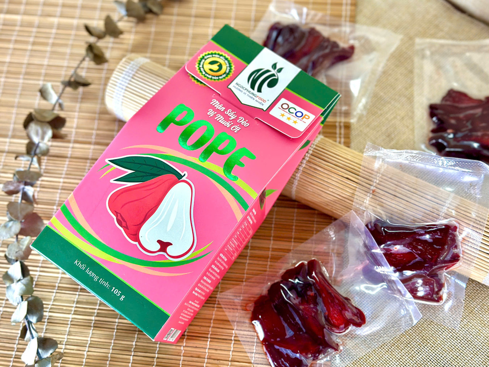 Mận sấy dẻo vị muối ớt POPE không chỉ là một món ăn vặt ngon miệng mà còn là lựa chọn lý tưởng cho những ai quan tâm đến sức khỏe. Sản phẩm được sản xuất từ công nghệ sấy lạnh hiện đại, giúp giữ lại tối đa dưỡng chất, đảm bảo an toàn vệ sinh thực phẩm và không sử dụng chất bảo quản. Với chứng nhận OCOP 3 sao, sản phẩm đảm bảo chất lượng vượt trội mang đến cho người tiêu dùng trải nghiệm ẩm thực đáng nhớ.