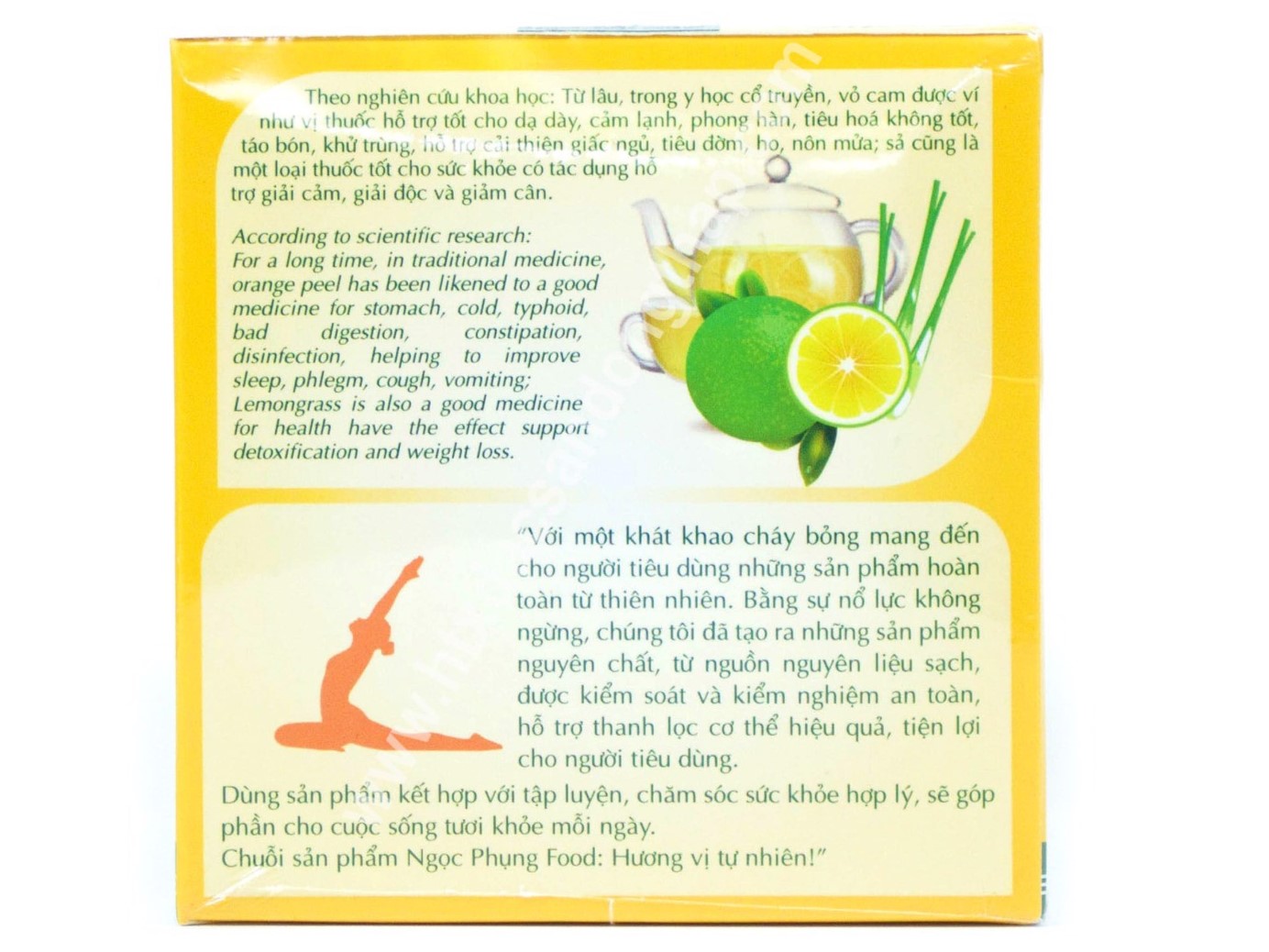 - HDSD: 01 gói cam sả tương đương 01 lít nước sôi, dùng như trà