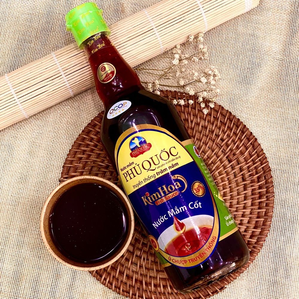 Nước mắm Kim Hoa là dòng nước mắm Cốt đặc biệt được ủ chượp theo phương pháp truyền thống với nguồn nguyên liệu là cá cơm thiên nhiên đến từ vùng biển Phú Quốc Từng giọt nước mắm Kim Hoa đã được chắt lọc ra từ những nguồn nguyên liệu tốt nhất