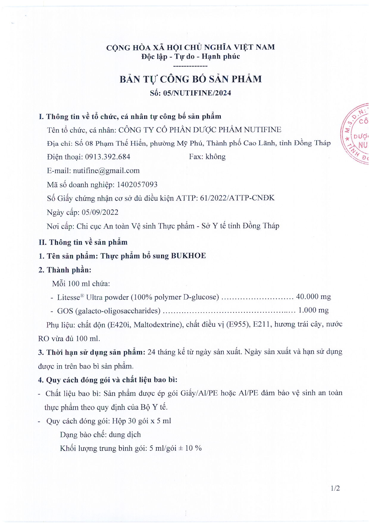 Công Ty TNHH TVTMDV GĐT ngụ tại huyện Cao Lãnh tỉnh Đồng Tháp chuyên cung cấp sản phẩm Siro Bukhoe Đường tiêu hoá khoẻ mang lại hiệu quả chất lượng đến tay khách hàng