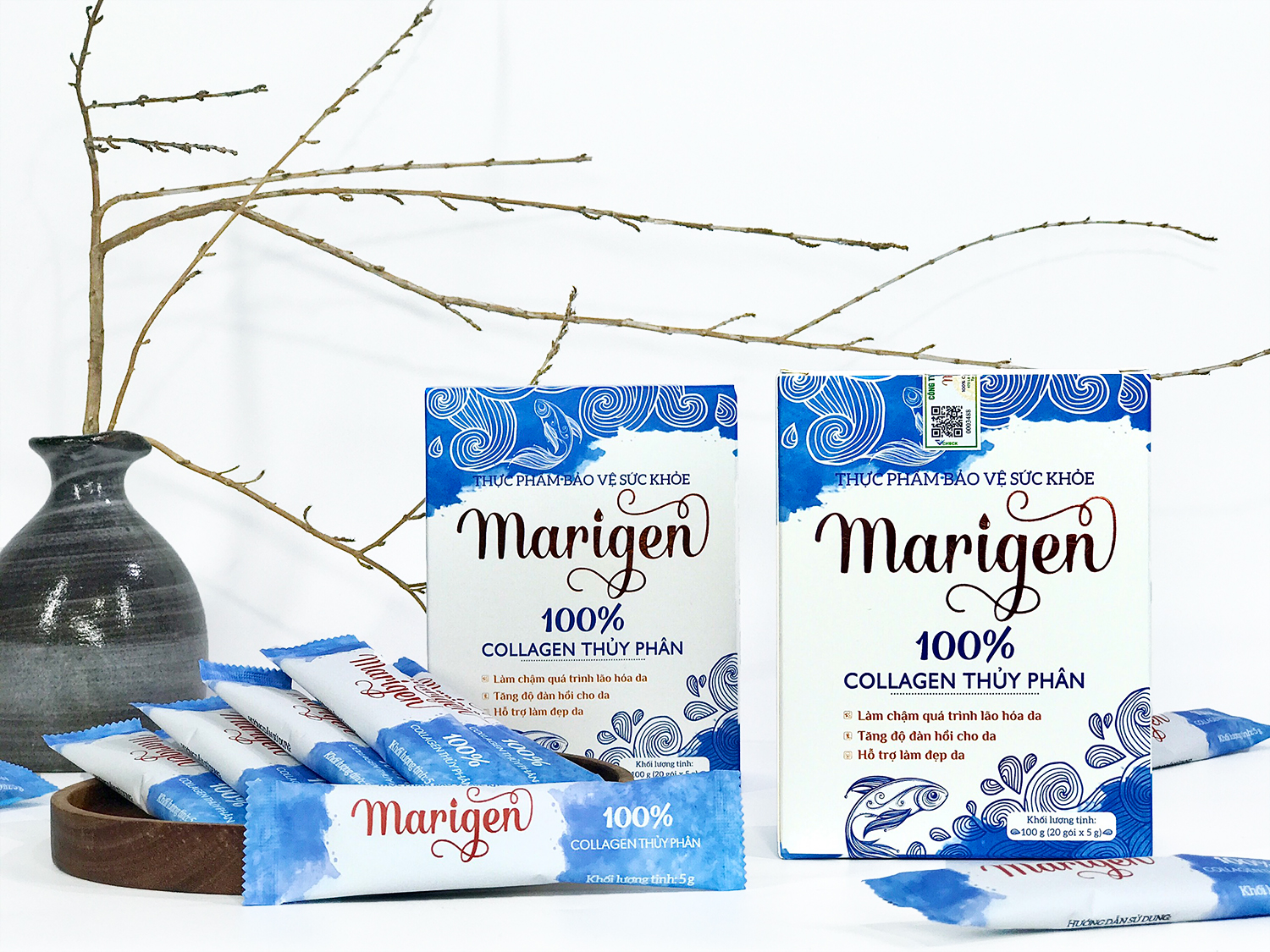 Marigen Collagen cung cấp collagen thủy phân dễ hấp thụ cho da, giúp cải thiện độ săn chắc và đàn hồi, làm da mềm mịn và giảm thiểu dấu hiệu lão hóa.
