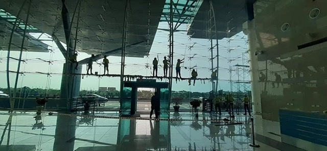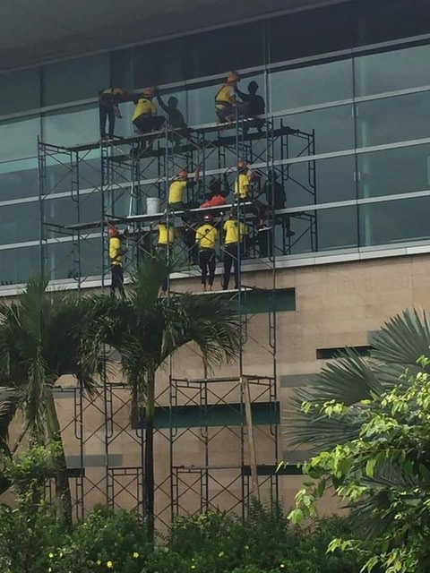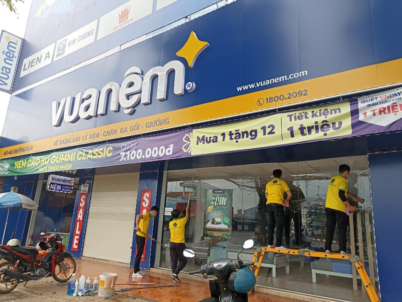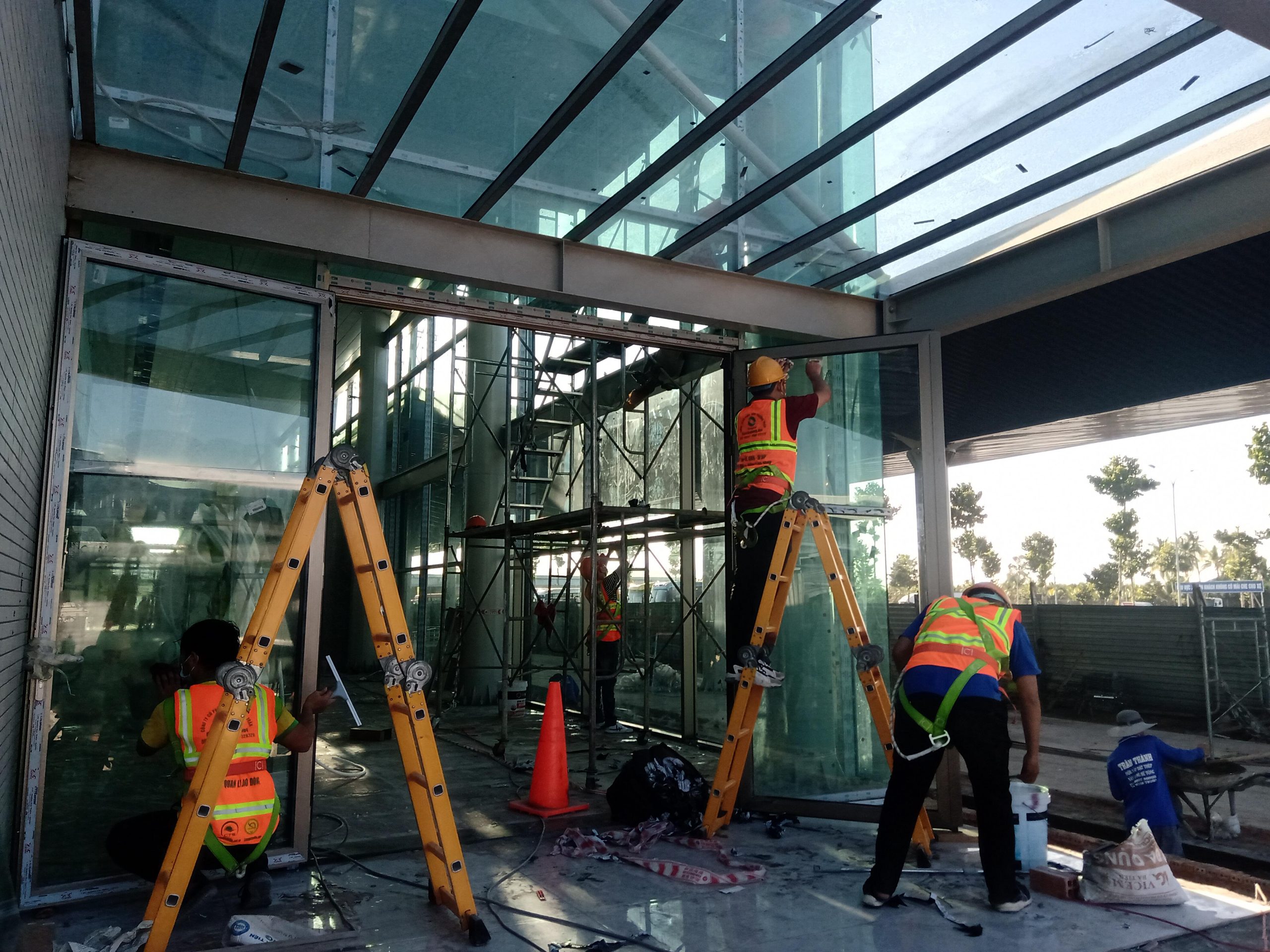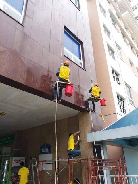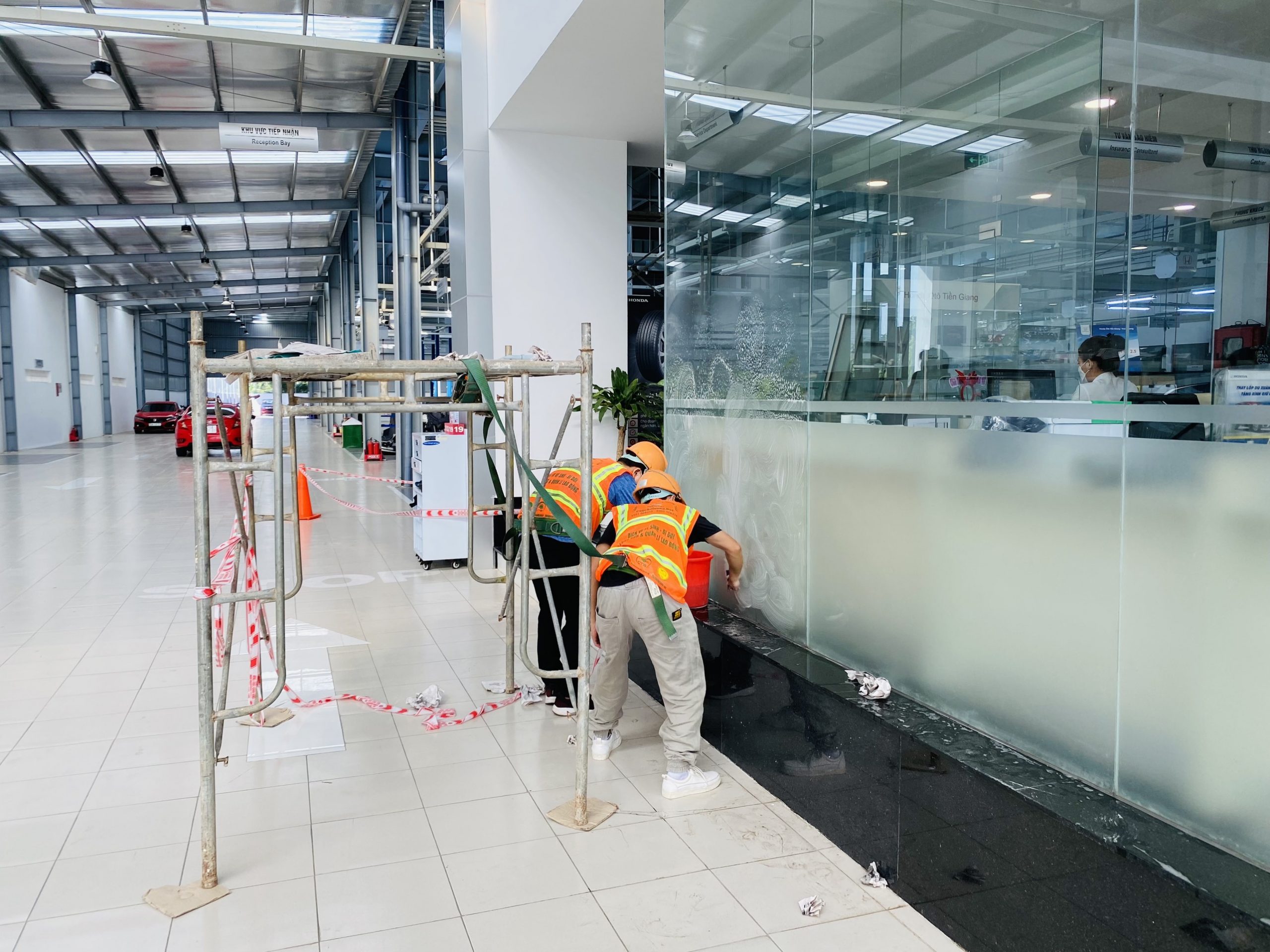 - Vệ sinh kính trên cao, bảng hiệu alu…