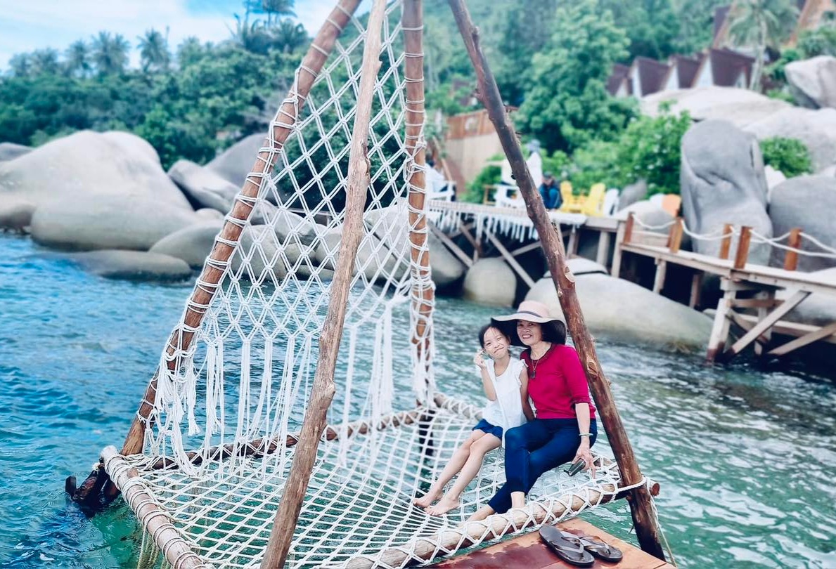 Dù đi nghỉ dưỡng vẫn không quên rèn luyện sức khỏe.