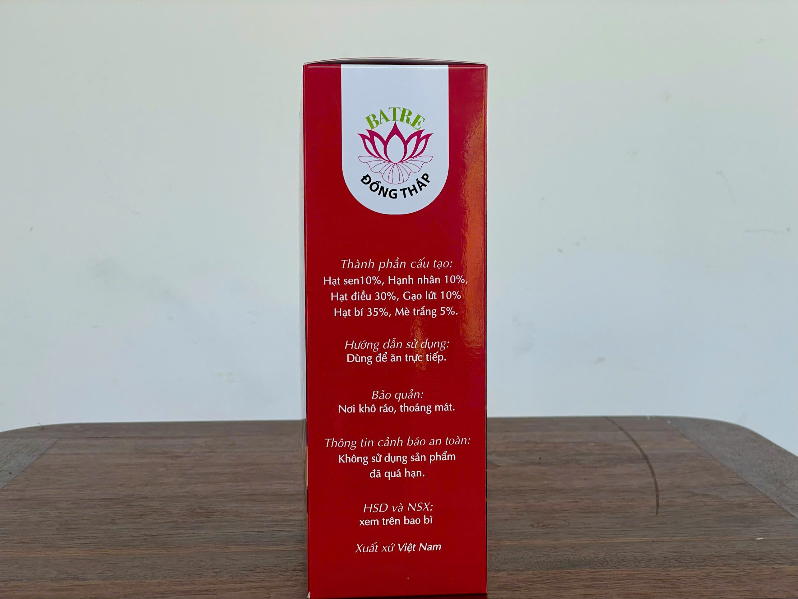 - Thành phần : Hạt sen, Hạnh nhân, Hạt điều, gạo lứt, Hạt bí, Mè trắng.