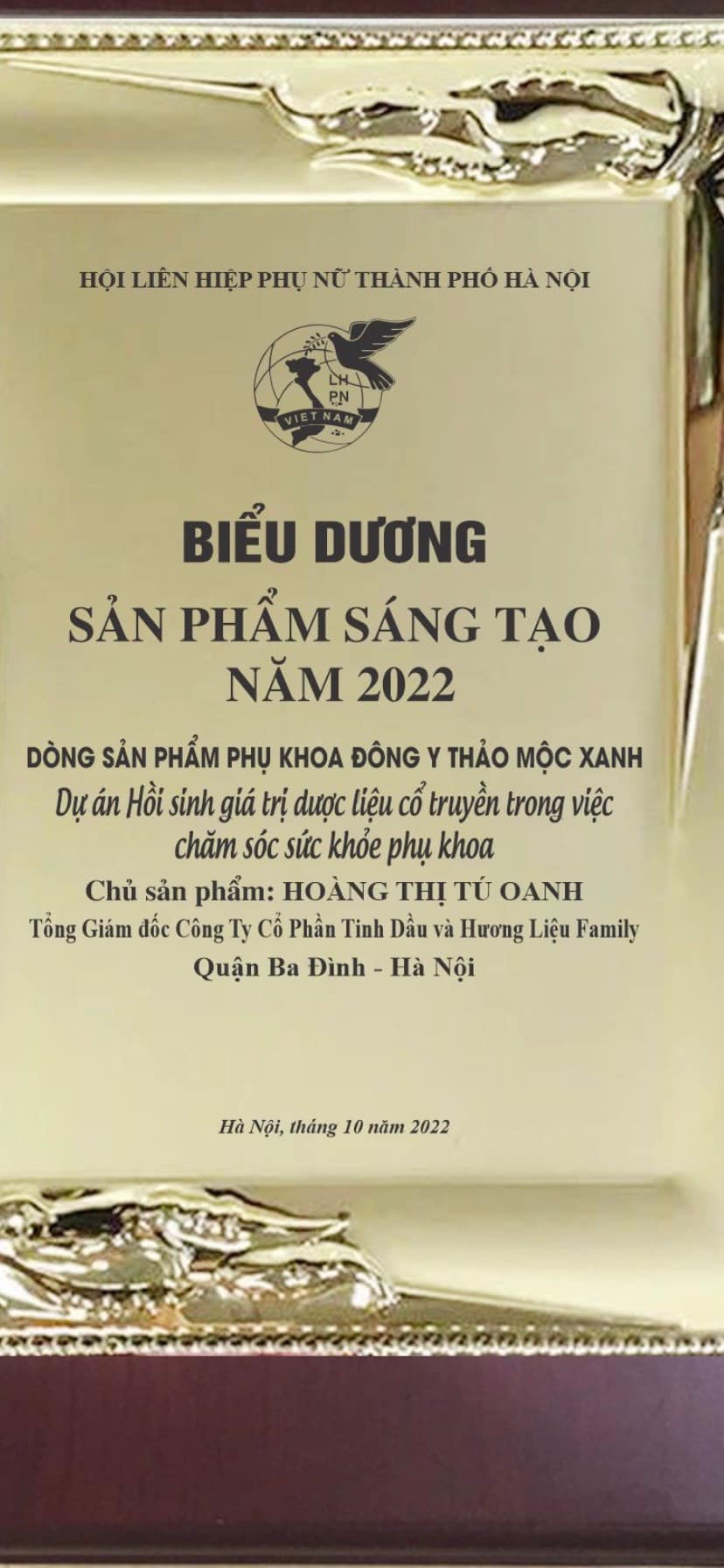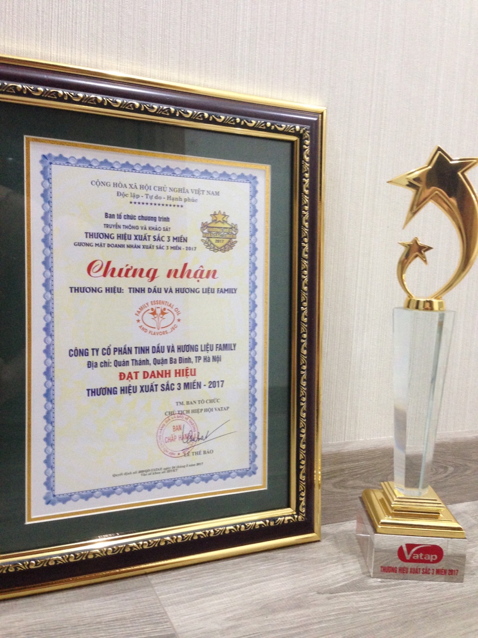 Taii đây Bà Hoàng Thị Tú Anh Tổng giám đốc công ty CP tinh dầu và Hương liệu Family đã dược nhận giải thưởng nằm trong “Top 10 thương hiệu quốc tế”