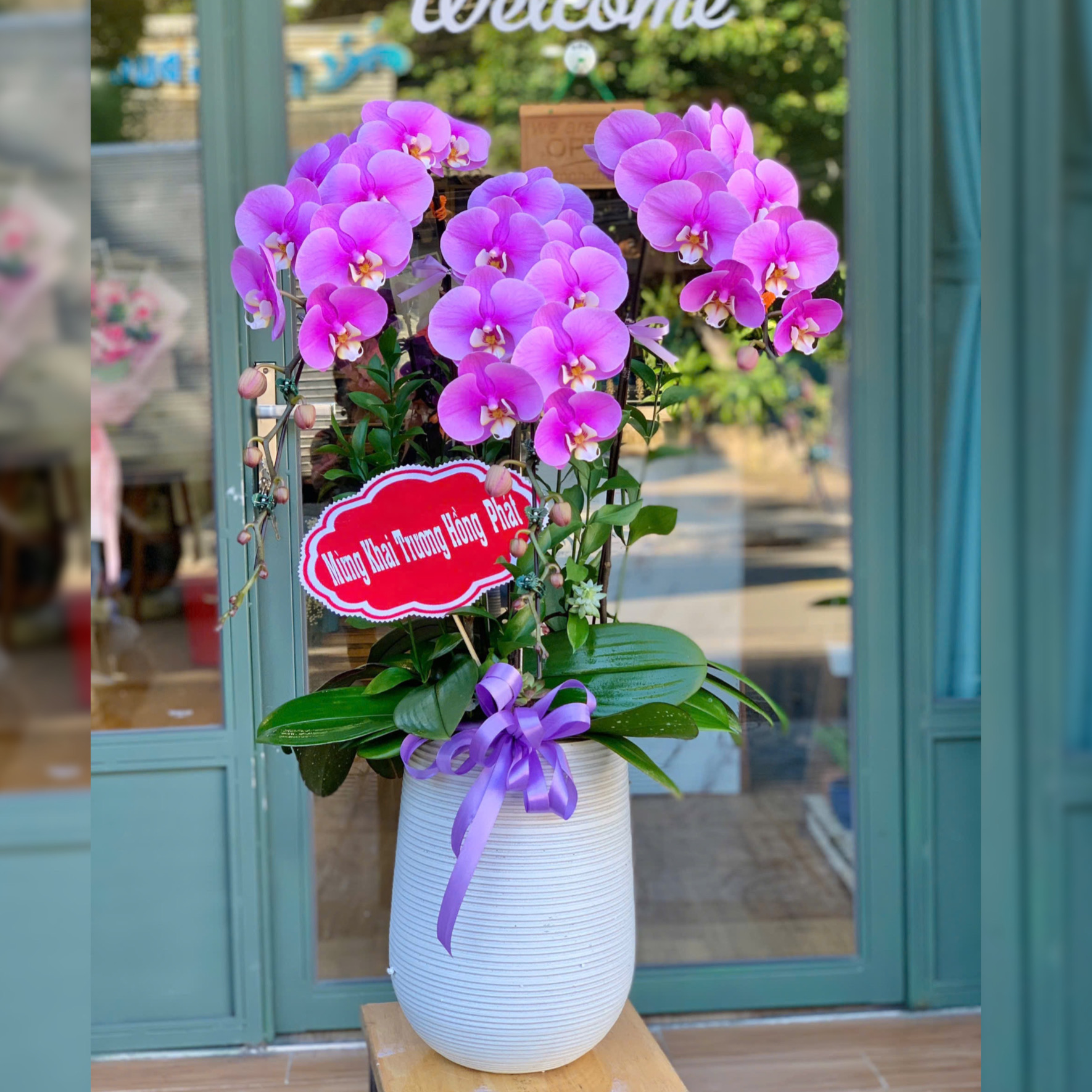 Kệ Hoa Chúc Mừng Hồng Tím