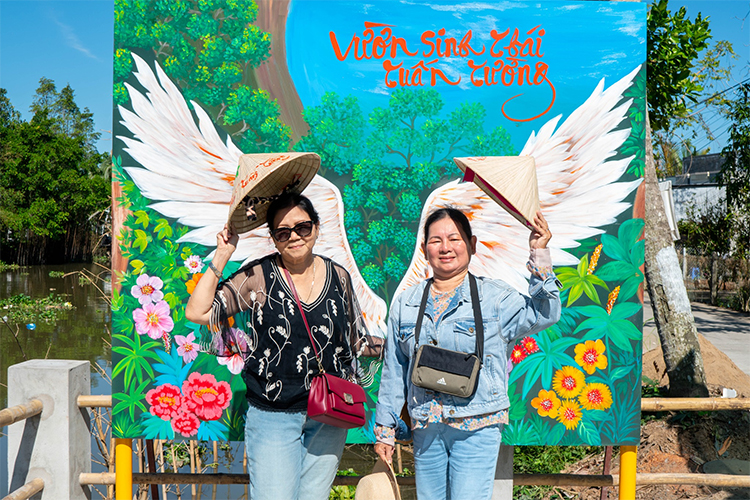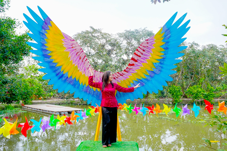 Với phong cảnh vườn cây trái và sông nước hữu tình, bên cạnh đó vườn còn bố trí những tiểu cảnh để chụp ảnh sẽ tô điểm thêm cho bức ảnh của bạn thêm màu sắc hơn.