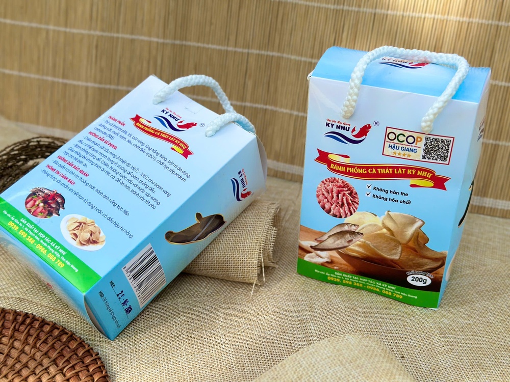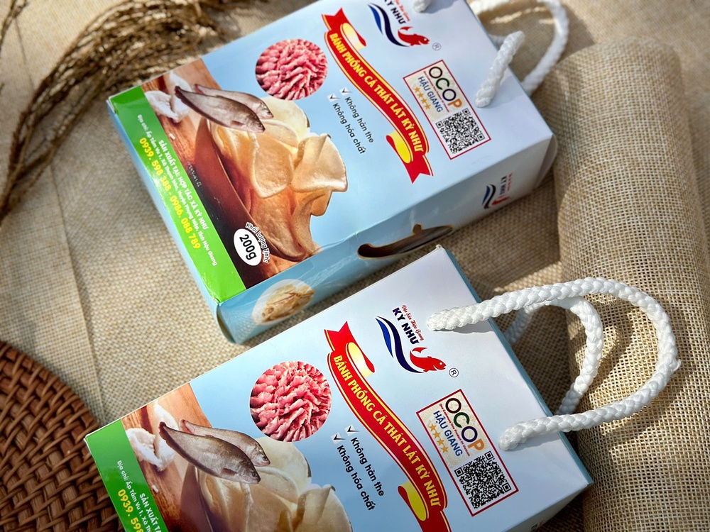 Bánh Phồng Cá Thát Lát Kỳ Như là đặc sản nổi tiếng của Hậu Giang, đạt danh hiệu OCOP 4 sao, không chứa hàn the hay hóa chất độc hại. Được chế biến từ cá thát lát tươi ngon và các nguyên liệu tự nhiên, sản phẩm mang đến hương vị thơm ngon, giòn rụm, là lựa chọn hoàn hảo cho bữa ăn nhẹ hoặc món ăn bổ dưỡng cho trẻ em.