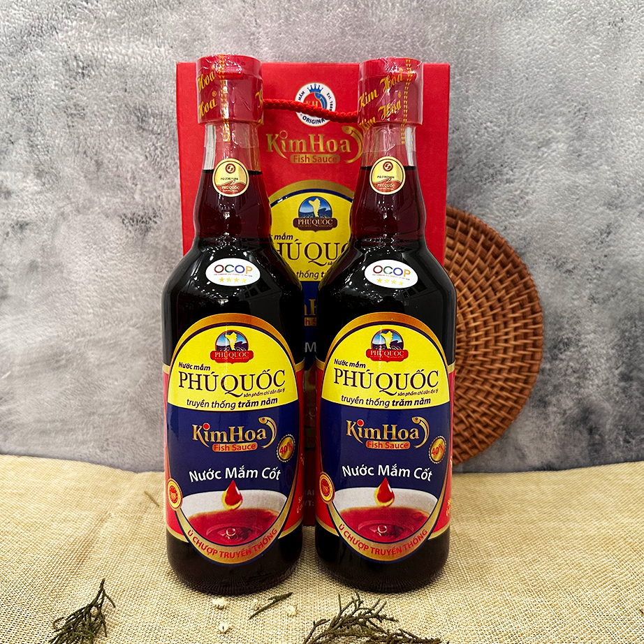 Nước mắm Kim Hoa là dòng nước mắm “Cốt” đặc biệt được ủ chượp theo phương pháp truyền thống với nguồn nguyên liệu là cá cơm thiên nhiên đến từ vùng biển Phú Quốc. Từng giọt nước mắm Kim Hoa đã được chắt lọc ra từ những nguồn nguyên liệu tốt nhất, mang đến cho khách hàng một sản phẩm vừa kết hợp được sự tinh hoa của nước mắm truyền thống và những dưỡng chất sức khỏe mà sản phẩm mang lại. Nước mắm là mặt hàng được sử dụng rộng rãi trong các bữa ăn của gia đình Việt từ xưa đến nay.
