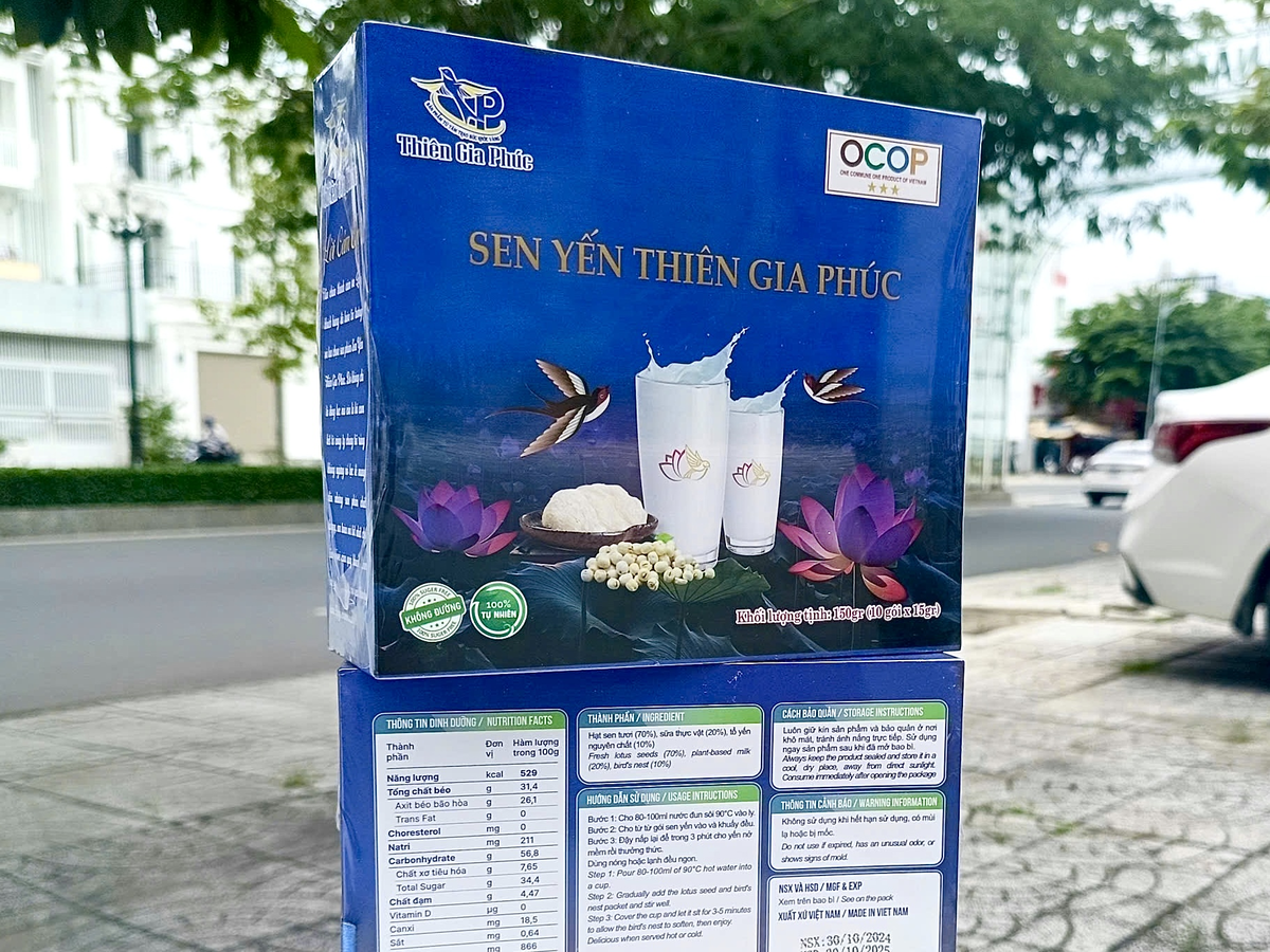 Sen Yến Thiên Gia Phúc là sự kết hợp tinh túy giữa hạt sen Đồng Tháp thơm ngọt, giàu dưỡng chất và tổ yến nguyên chất thượng hạng. Được sản xuất trên dây chuyền công nghệ nano tiên tiến, sản phẩm mang đến một thức uống 100% tự nhiên, không đường, đạt chứng nhận OCOP 3 sao cùng các tiêu chuẩn chất lượng quốc tế ISO 22000. Đây không chỉ là món quà sức khỏe mà còn là niềm tự hào ẩm thực đặc trưng miền Tây Nam Bộ.