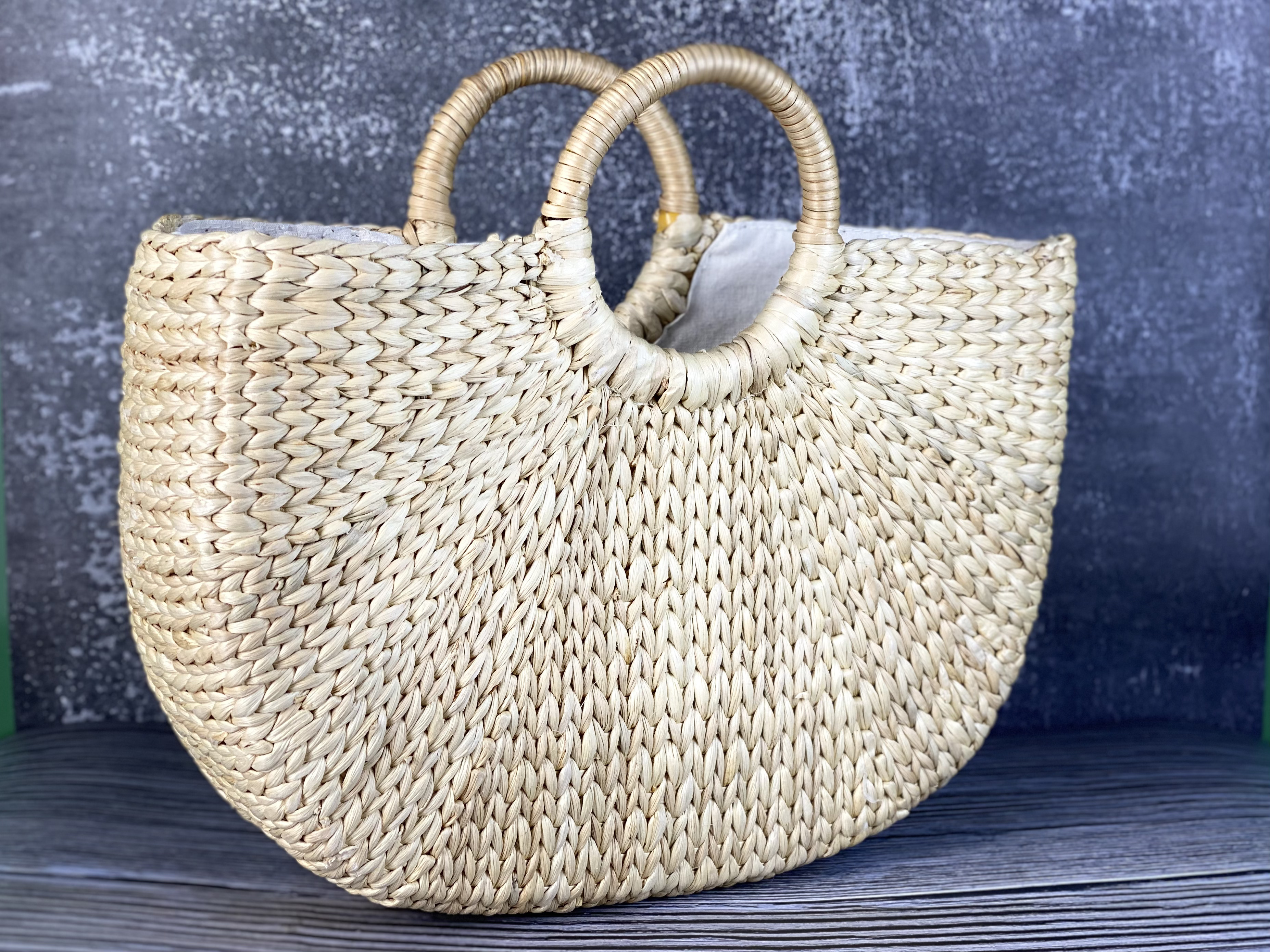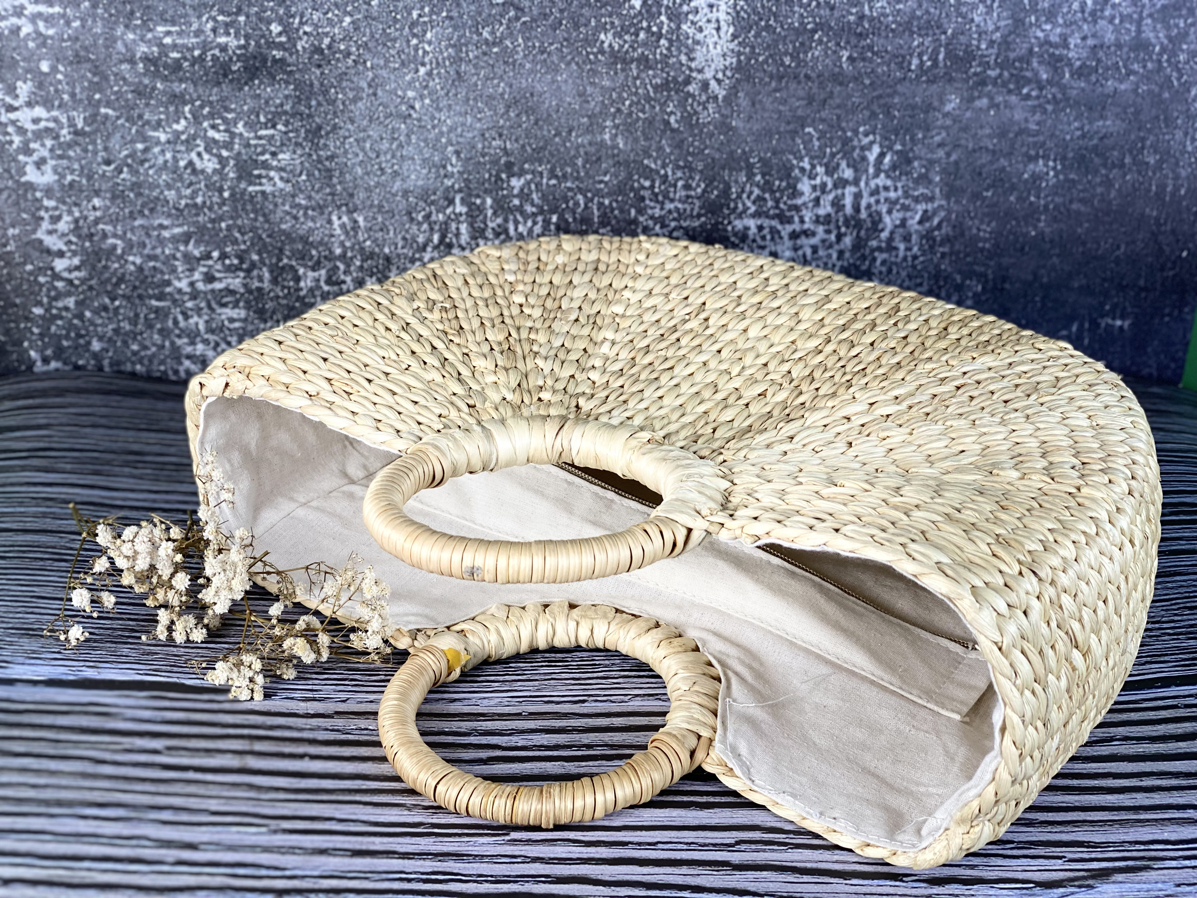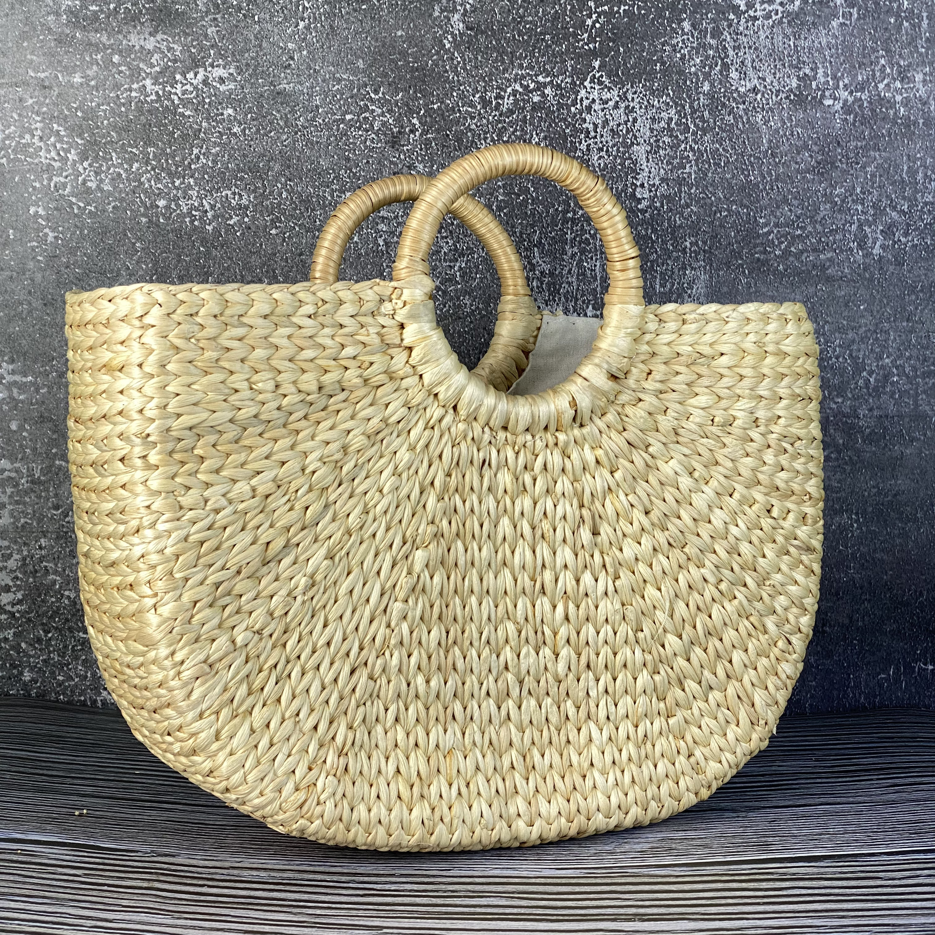 Giỏ mề gà bán nguyệt là sản phẩm độc đáo được đan thủ công bằng tay của những người nghệ nhân lành nghề Giỏ làm từ 100 nguyên liệu tự nhiên là lục bình phơi khô