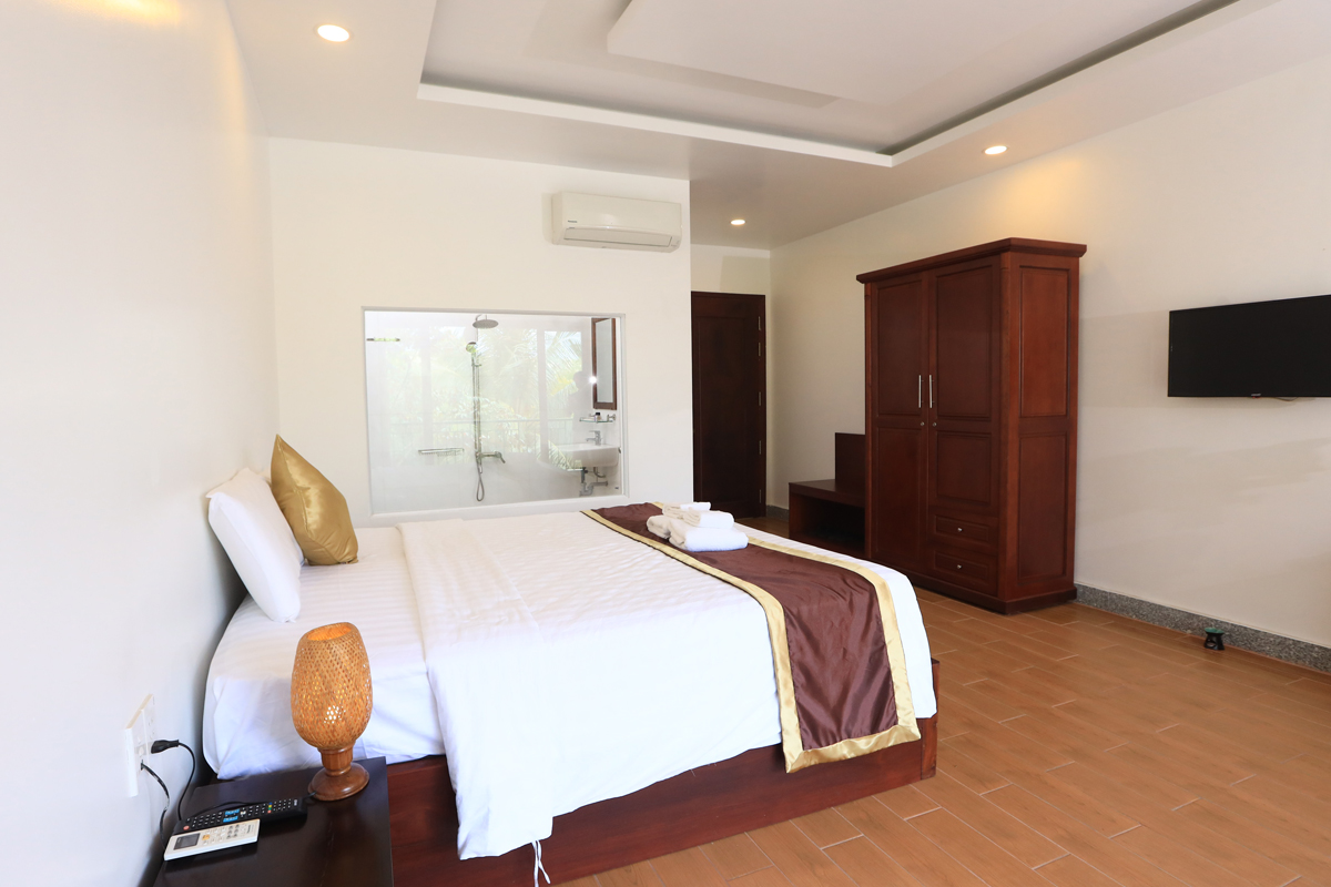 Deluxe Double Bungalow thoáng mát với các tiện nghi hiện đại, view thành phố Hà Tiên, chỉ cách Chợ Hà Tiên 10phút đi bộ, vị trí gần nhà hàng.