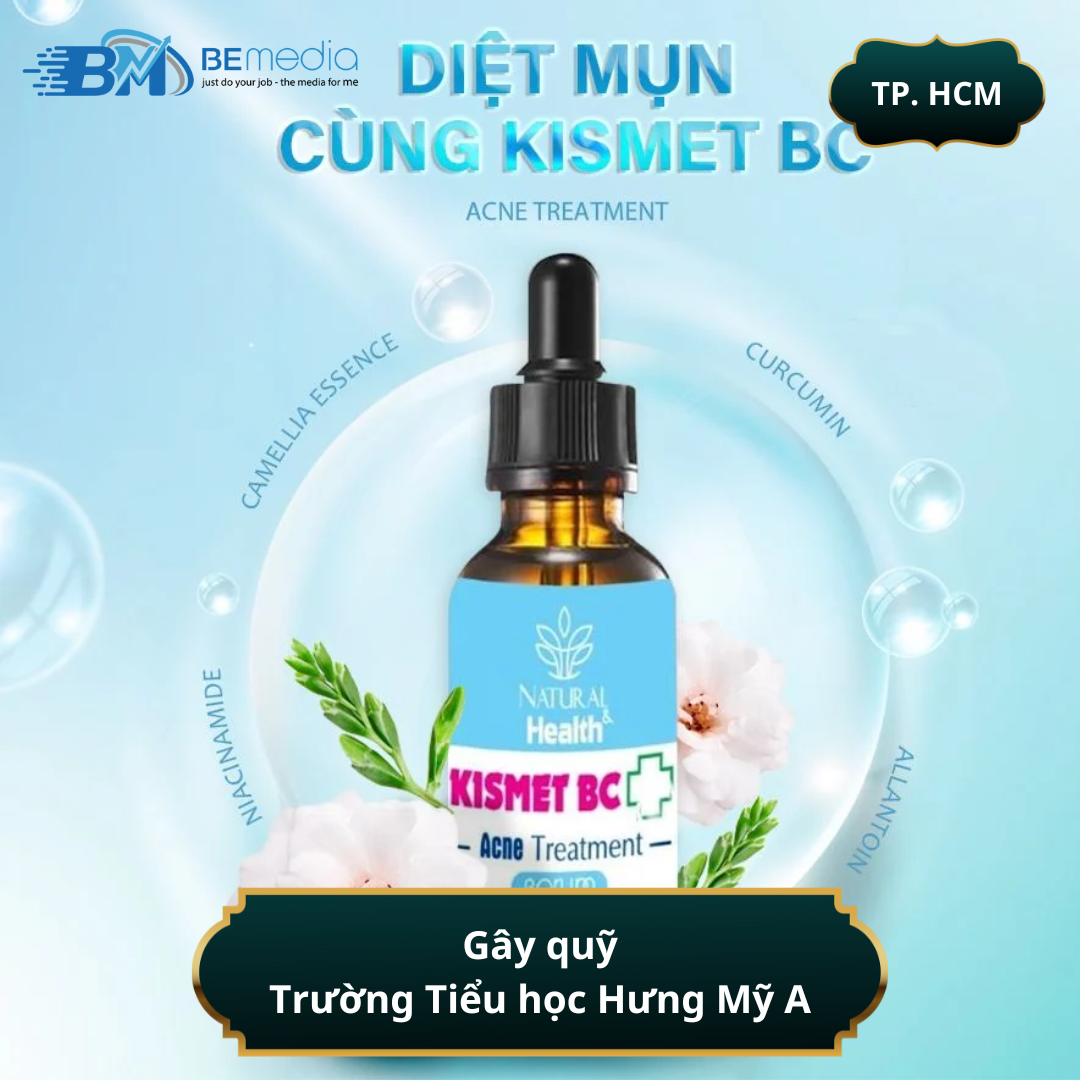 Serum mụn Kismet BC chứa nhiều thành phần nổi bật như: chiết xuất hoa trà Nhật Bản (Camellia Japonica Flower Extract), hoạt chất Curcumin, Niacinamine, Allantoin… Mang đến tác động 3 trong 1 vừa đem lại hiệu quả điều trị mụn tối ưu, vừa hỗ trợ mờ thâm, sáng da chỉ sau 7-10 ngày sử dụng.