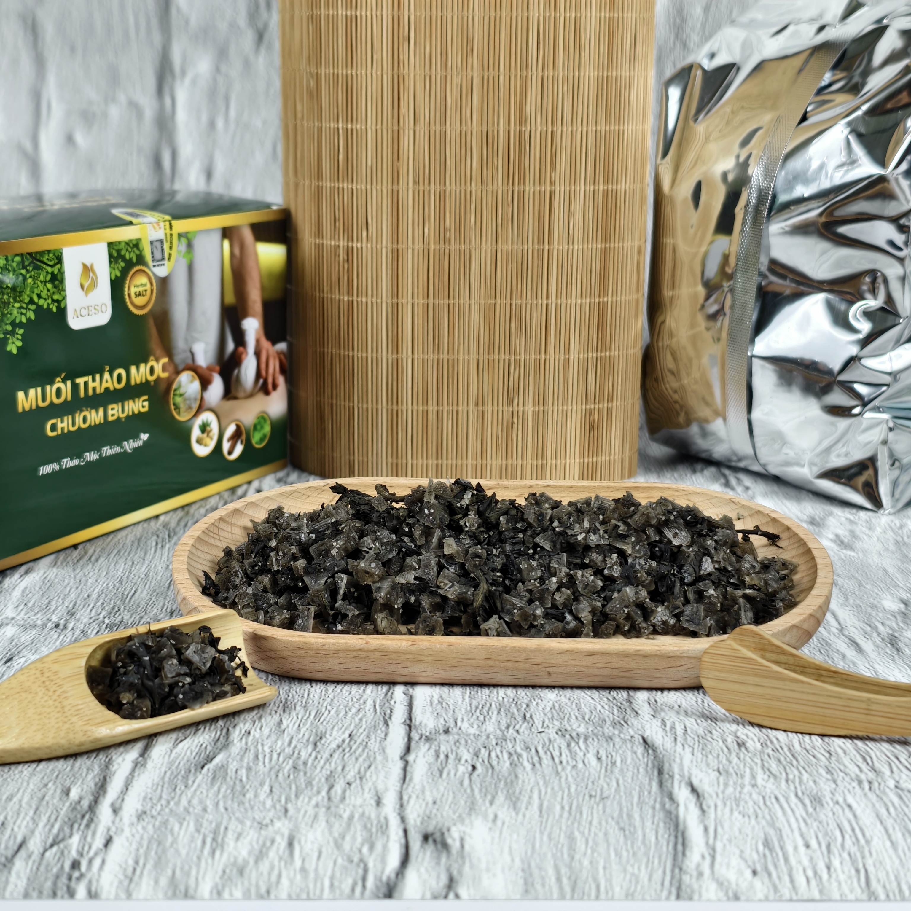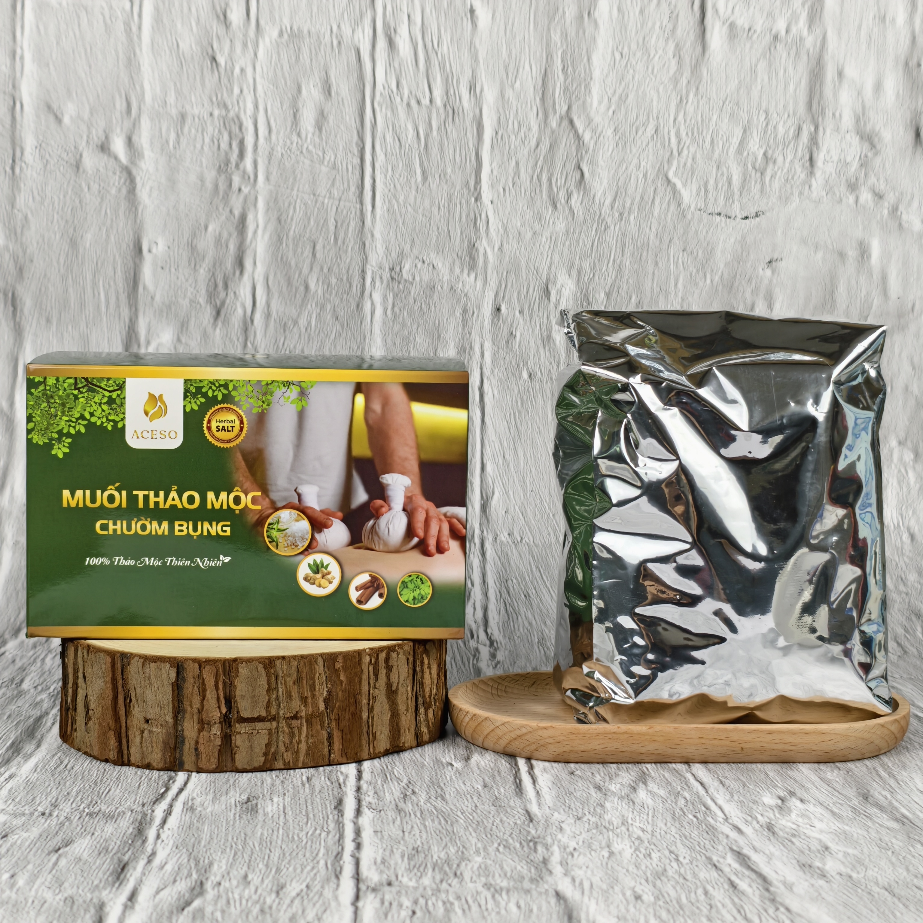 - Tên sản phẩm: Muối thảo mộc chườm bụng Aceso