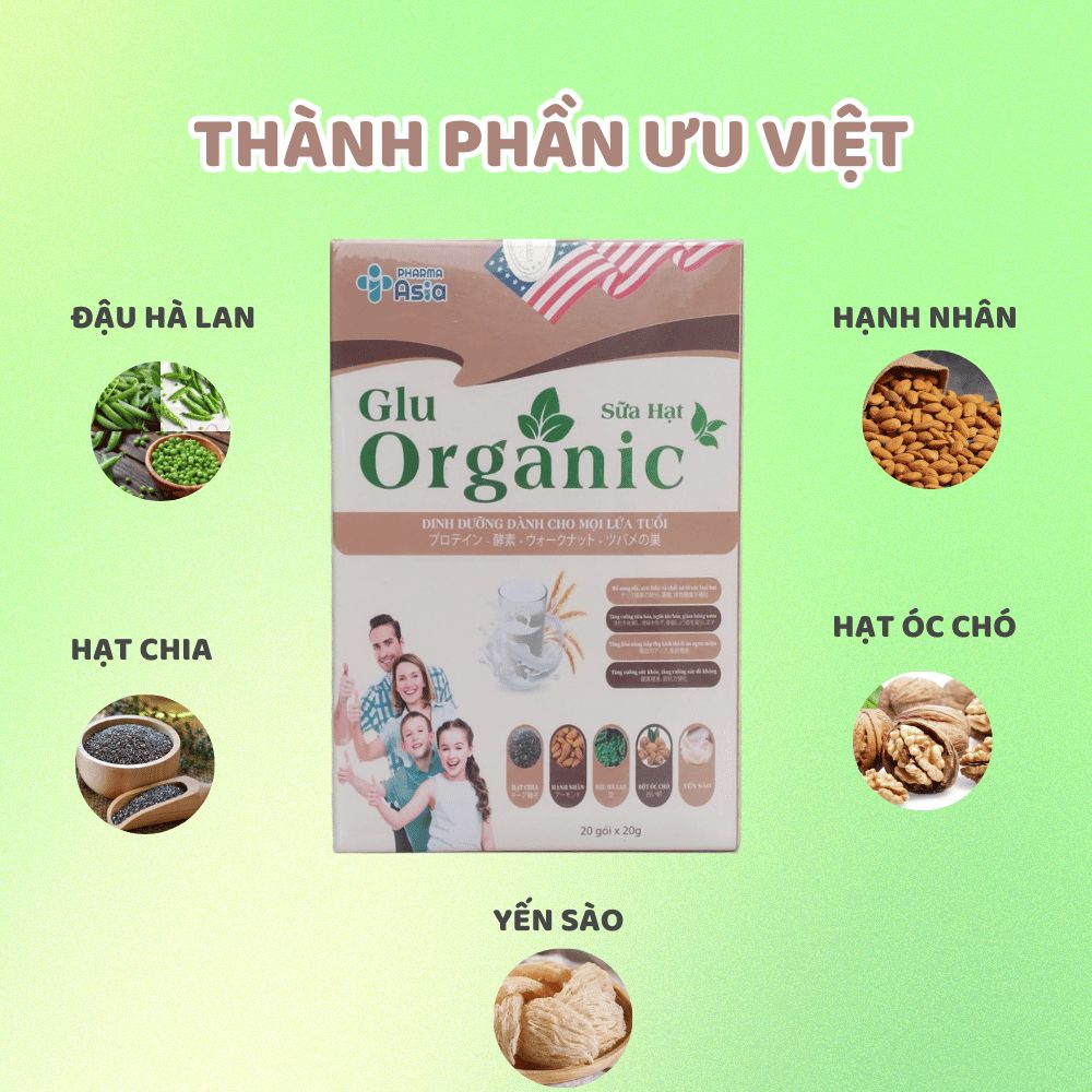 Sữa Hạt Gluorganic là giải pháp dinh dưỡng toàn diện từ các loại hạt tự nhiên, mang đến trải nghiệm chăm sóc sức khỏe hiện đại chỉ trong 800g.