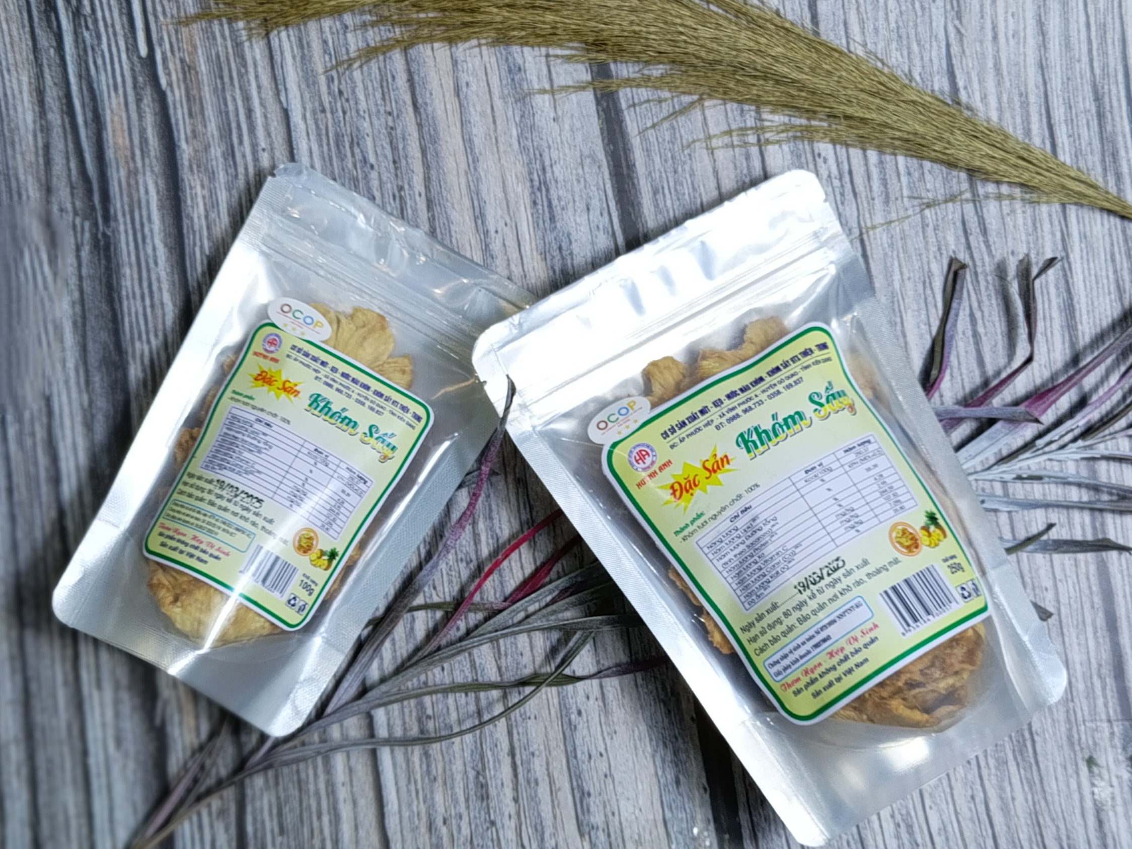 Khóm sấy là sản phẩm được chế biến 100% từ khóm tươi tự nhiên. Đây là món ăn vặt lành mạnh, giàu vitamin và dưỡng chất tốt cho sức khỏe. Vị chua chua, ngọt ngọt đặc trưng của khóm kết hợp với độ dẻo dai vừa phải sau khi sấy sẽ khiến bạn “mê mẩn” ngay từ lần thưởng thức đầu tiên.