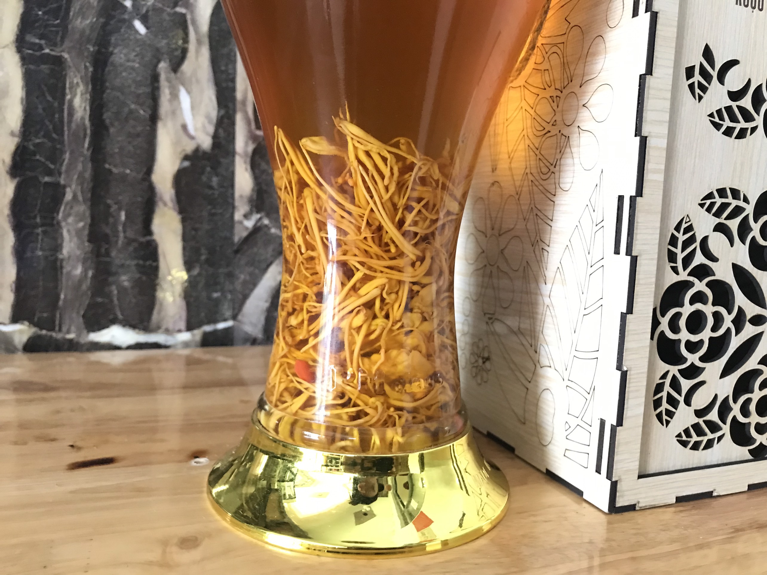 Rượu đông trùng hạ thảo. Sản phẩm rượu cao cấp dành cho phái mạnh, thiết kế dáng bình sang trọng, đẳng cấp quý phái.