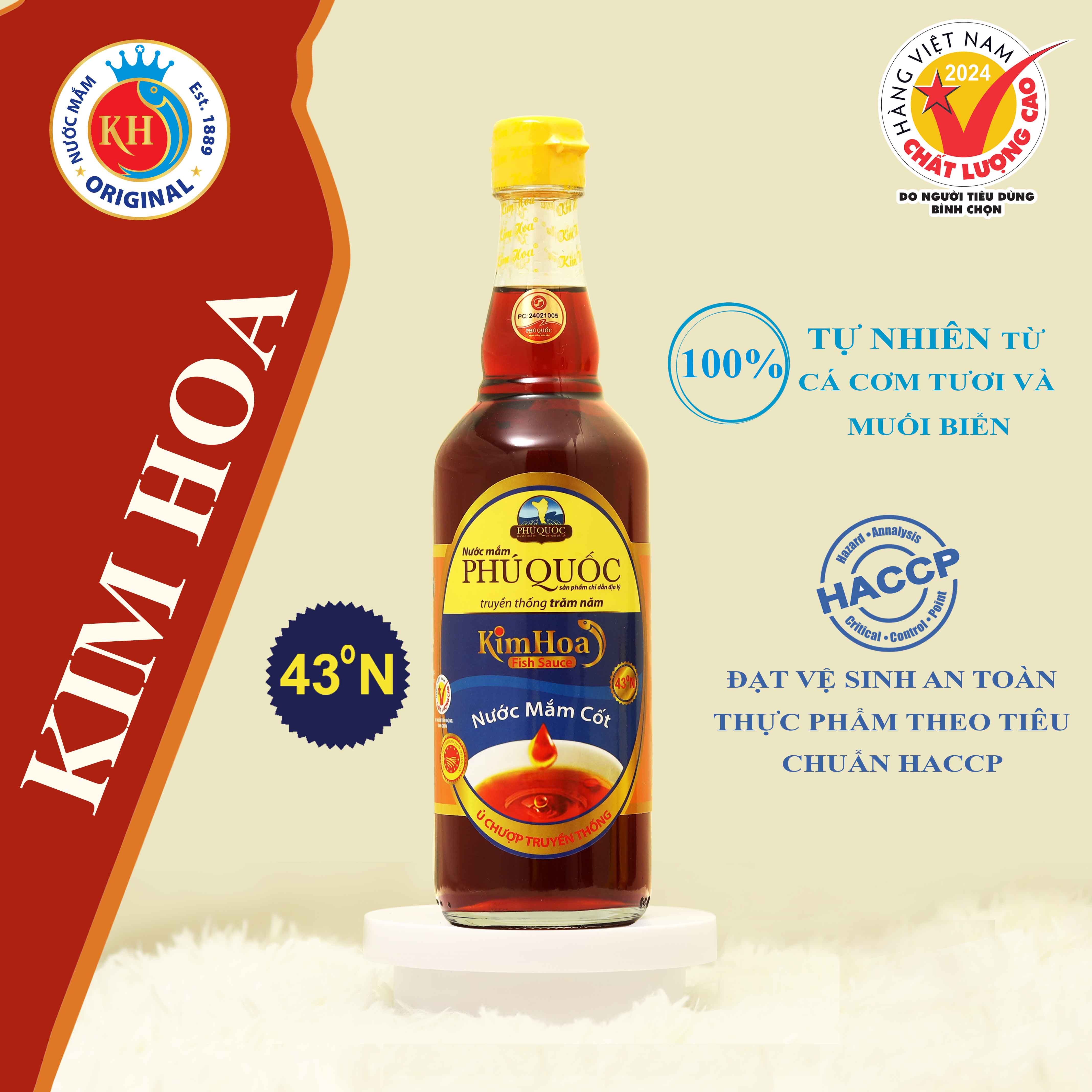 Nước mắm Kim Hoa là dòng nước mắm “Cốt” đặc biệt được ủ chượp theo phương pháp truyền thống với nguồn nguyên liệu là cá cơm thiên nhiên đến từ vùng biển Phú Quốc.