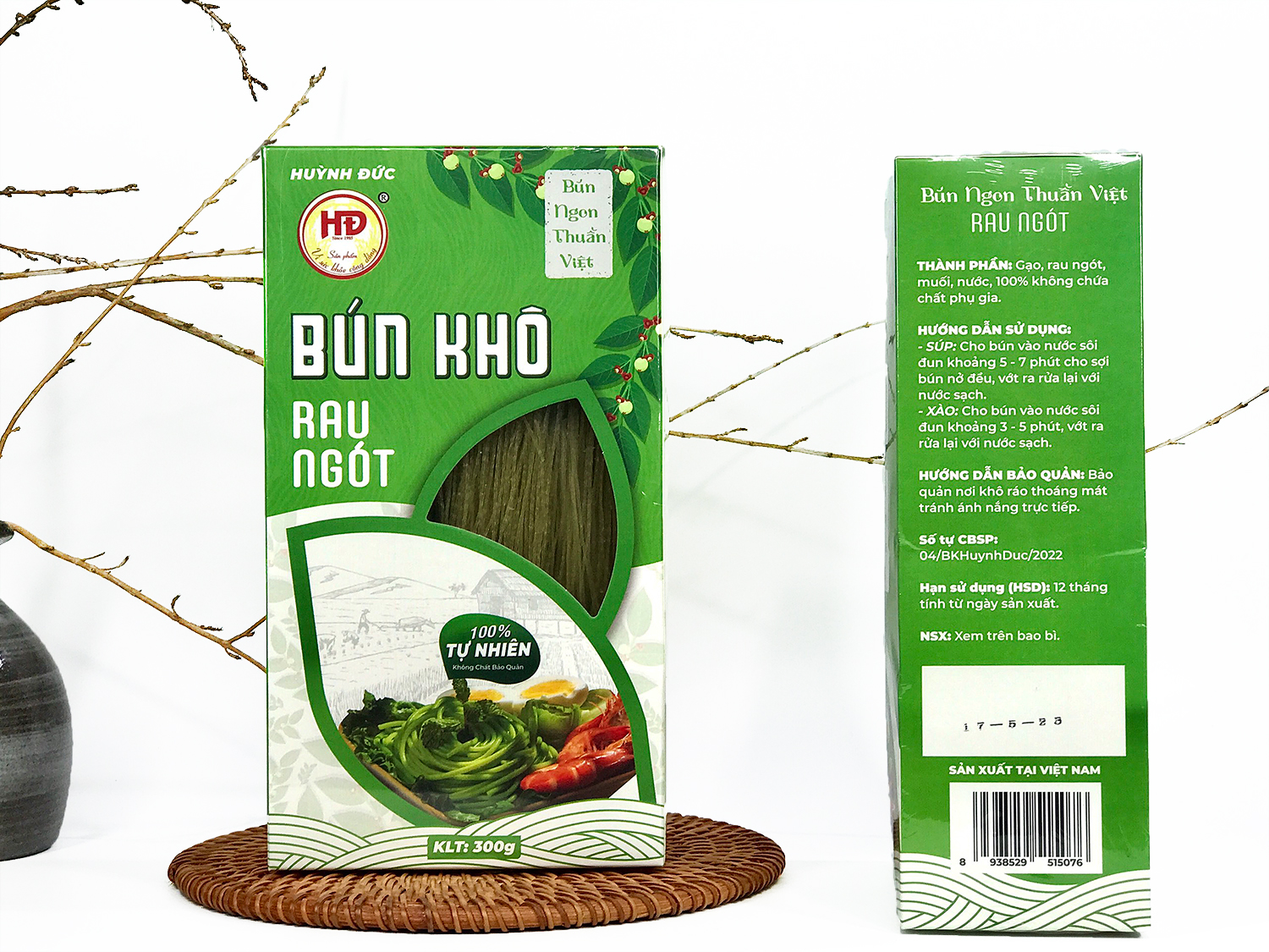 Bún khô Rau Ngót có nguyên liệu chính làm từ gạo, rau ngót , muối, nước, đặc biệt là 100% không chứa chất phụ gia. Sản phẩm đã đạt được chứng nhập OCOP là sản phẩm đạt an toàn vệ sinh thực phẩm.
